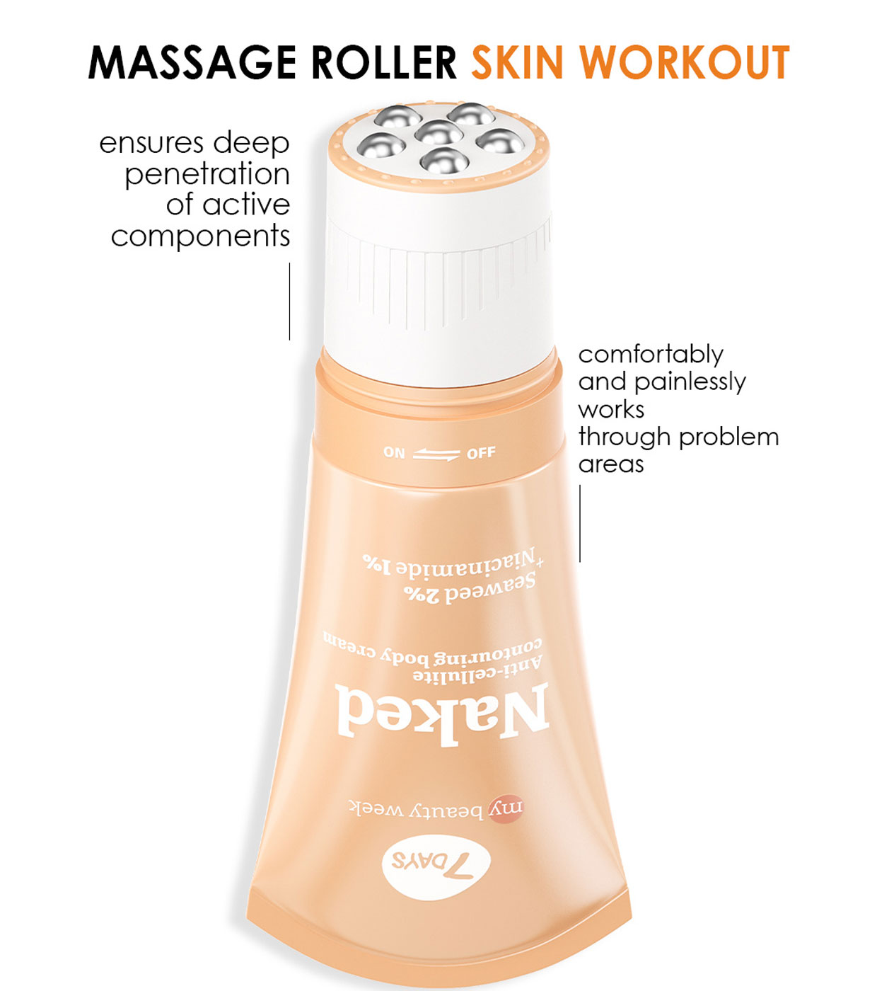 O rolo "SKIN WORKOUT" atua de forma confortável e indolor nas áreas problemáticas, reforçando o efeito anticelulite e garantindo a penetração profunda dos componentes ativos.