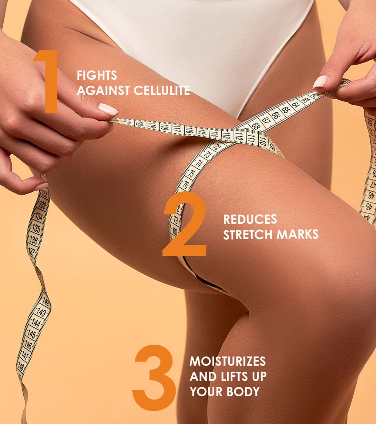 Com resultados duradouros em apenas 10 minutos por dia, proporciona uma pele mais firme, esculpida e sem celulite.