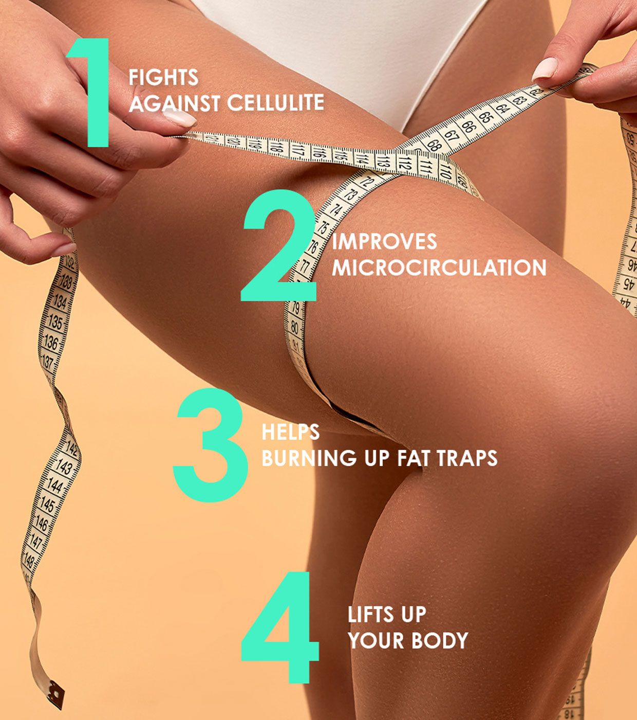 O rolo de massagem "SKIN WORKOUT" atua de forma confortável e indolor nas áreas problemáticas, potencializando o efeito anticelulite e garantindo a penetração profunda dos componentes ativos.