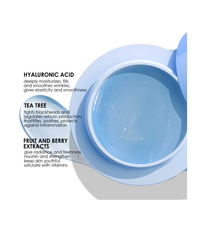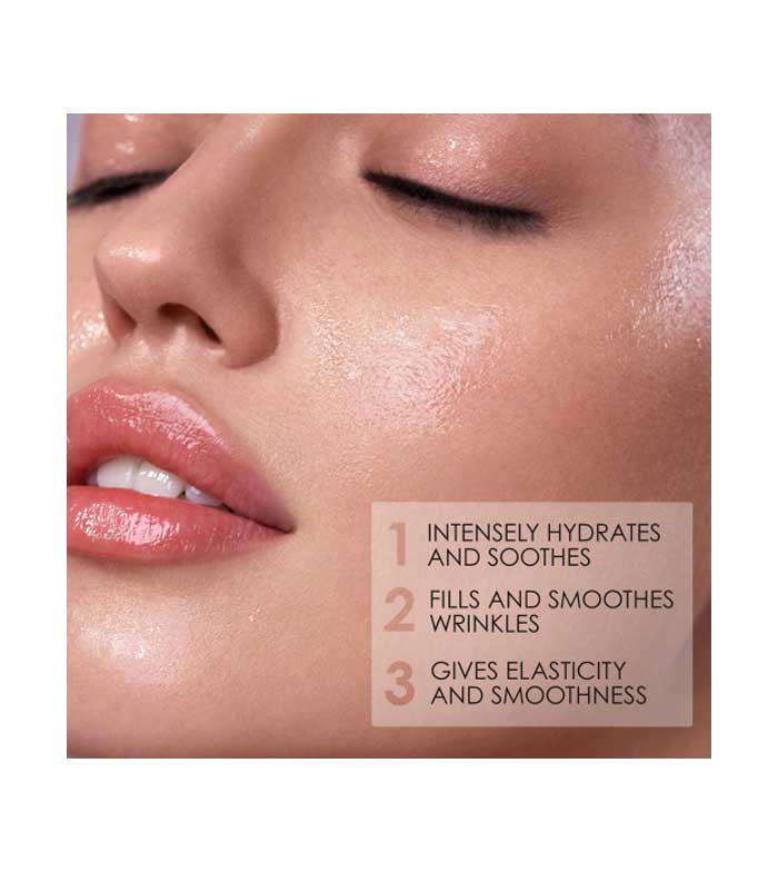 Sua fórmula inteligente funciona como máscara de hidratação intensiva e gel hialurônico sem enxágue.