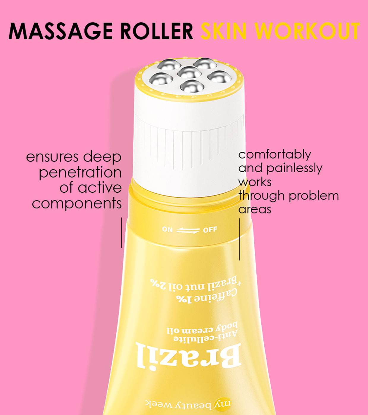 O rolo "SKIN WORKOUT" atua de forma confortável e indolor nas áreas problemáticas, reforçando o efeito anticelulite e garantindo a penetração profunda dos componentes ativos.