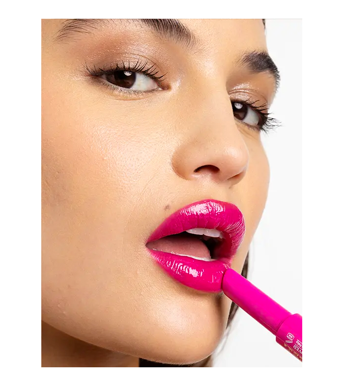 Esses batons têm acabamento brilhante e deixam um toque de cor intensa ao mesmo tempo que proporcionam hidratação extra.