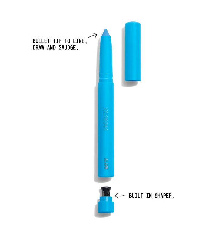 As sombras da linha Shadowstick matte são de longa duração e foram projetadas para durar mais de 10 horas na pálpebra.