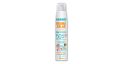 É uma névoa solar seca ideal para proteger a pele das crianças dos ataques do sol.