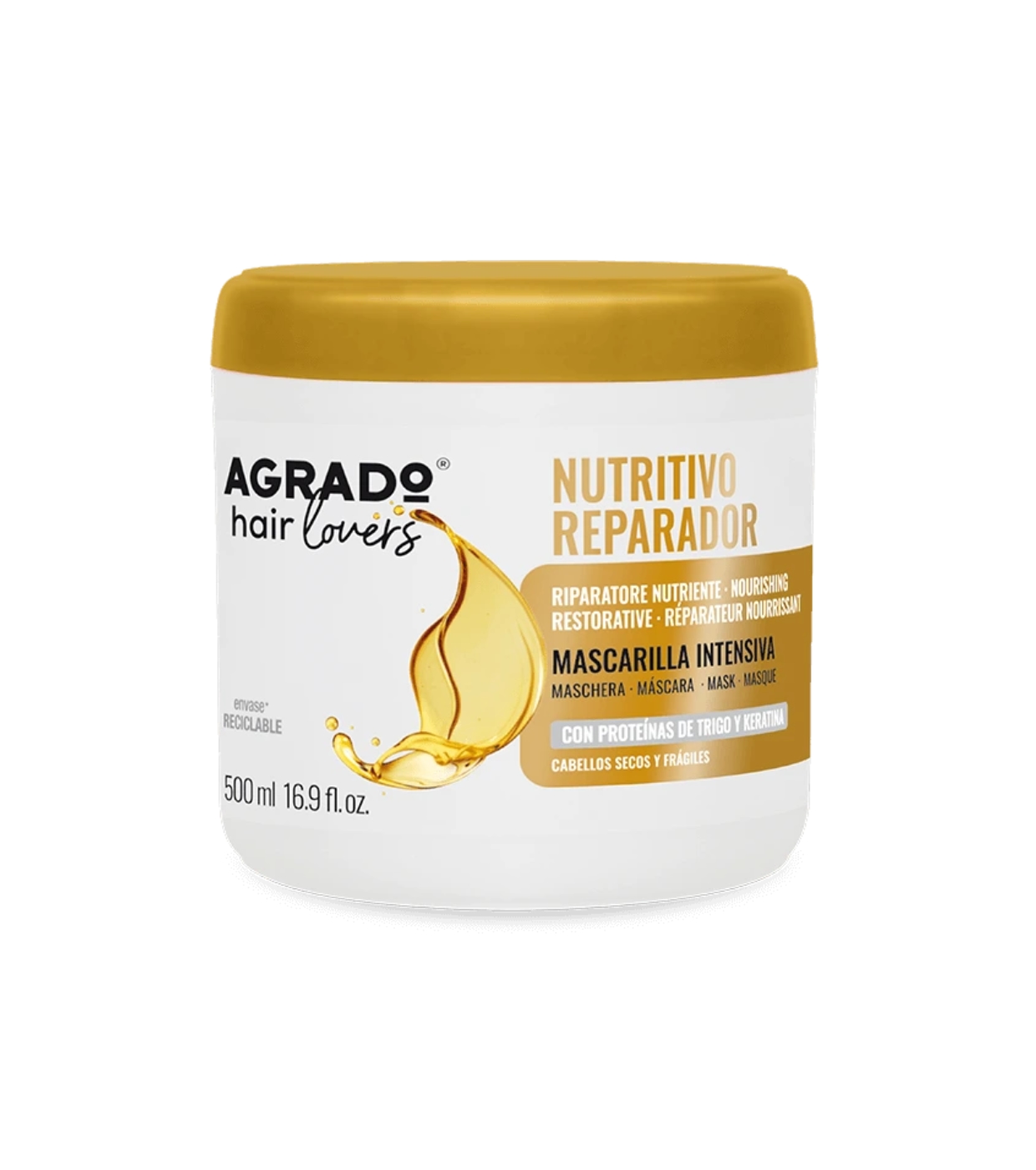 A máscara nutritiva para cabelos secos e quebradiços por Agrado Cosmetic atende três funções em um produto: suaviza, nutre e repara.