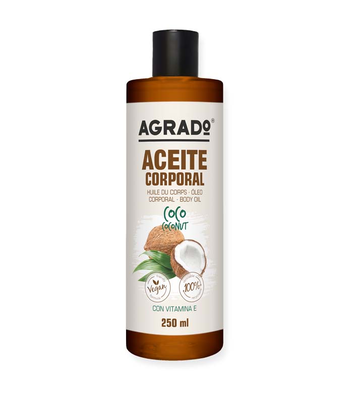 Óleo corporal com aroma de coco da Agrado Cosmetics .