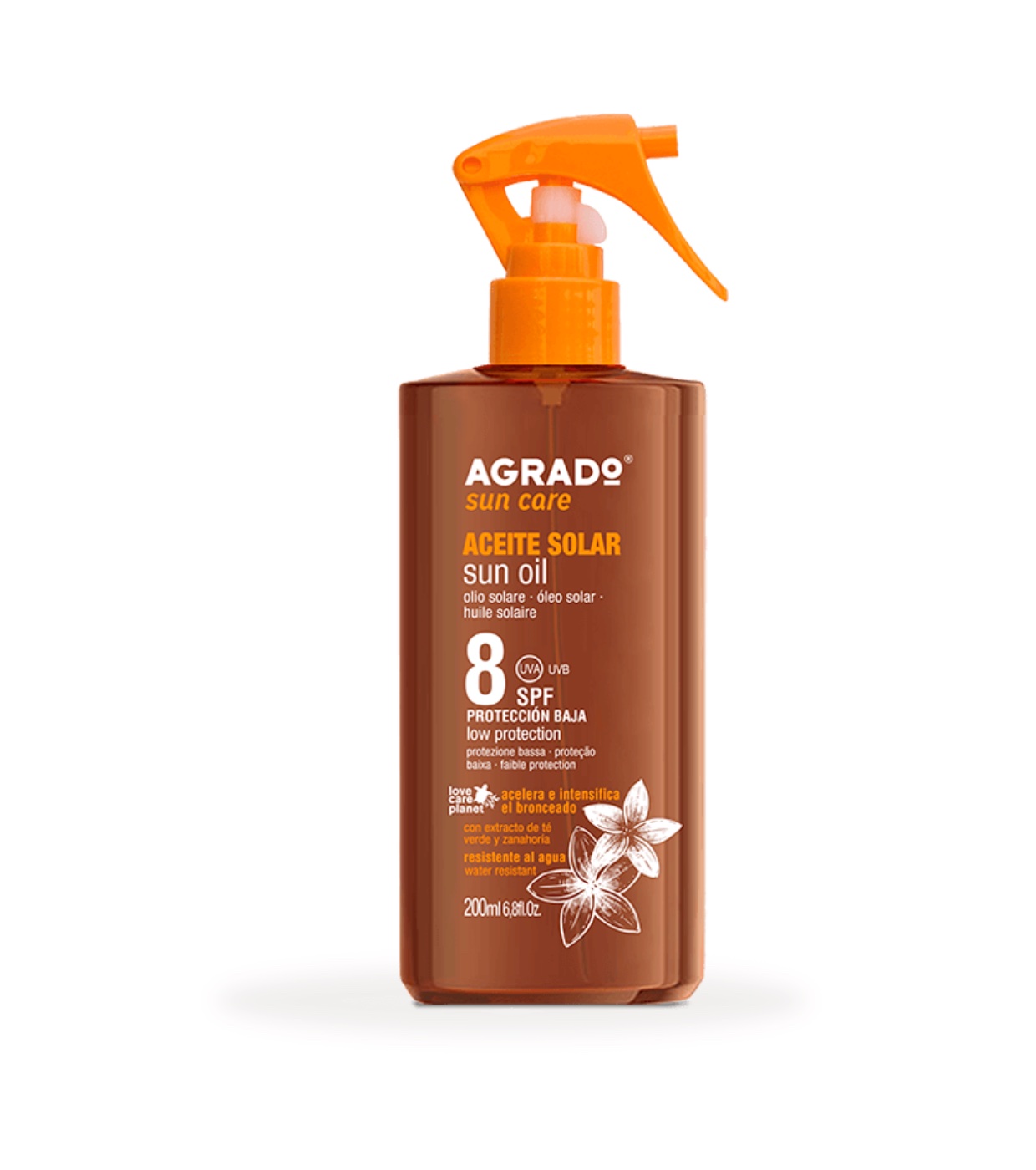 Óleo solar que acelera e intensifica o bronzeamento de Agrado.
