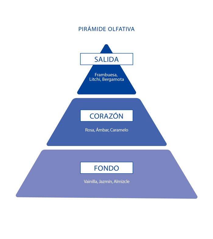 Suas notas de saída têm notas de frutas vermelhas como framboesa e um toque de bergamota, que se fundem em um coração de notas de rosa, âmbar e caramelo, adquirindo gradativamente persistência, um fundo com notas de baunilha, jasmim e almíscar.