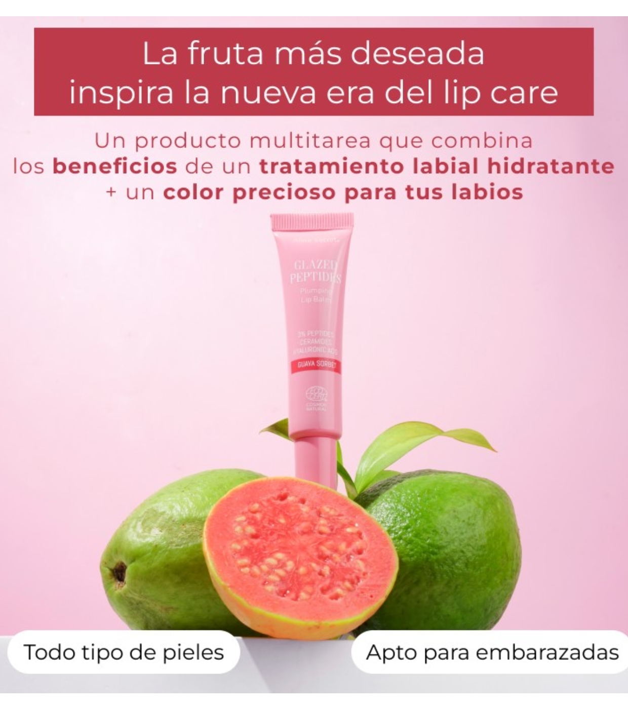 Aceite de semilla de Ricinus Communis, aceite de semilla de Simmondsia Chinensis*, aceite vegetal hidrogenado, péptido de Pisum Sativum, bentonita, manteca de Butyrospermum Parkii*, aceite de semilla de Rubus Idaeus*, manteca de semilla de Theobroma Grandiflorum*, glicoesfingolípidos, cera de Candelilla, antocianinas, hialuronato de sodio, extracto de fruto de Psidium Guajava, dióxido de titanio (CI 77891), extracto de hoja/tallo de Stevia Rebaudiana, ceramida NP, tocoferol, olivato de sorbitán, alcohol cetearílico, filtrado de fermento de raíz de Leuconostoc/rábano, glicerina, aroma, óxidos de hierro (CI 77491), undecilenato de heptilo, ácido cítrico, agua, aceite de colza hidrogenado, sorbato de potasio, benzoato de sodio, ácido caproico, esteviósido.