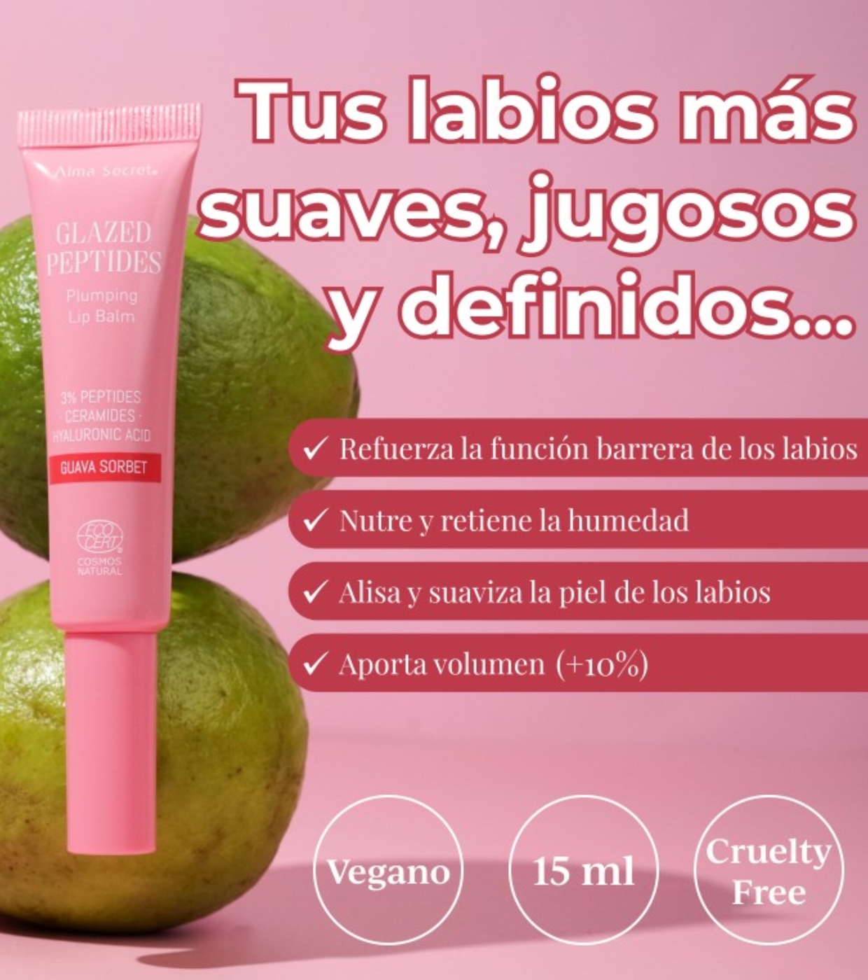 - 3% de peptídeos: hidratam, suavizam linhas finas e proporcionam um efeito de preenchimento de longa duração, melhorando a firmeza dos lábios.
