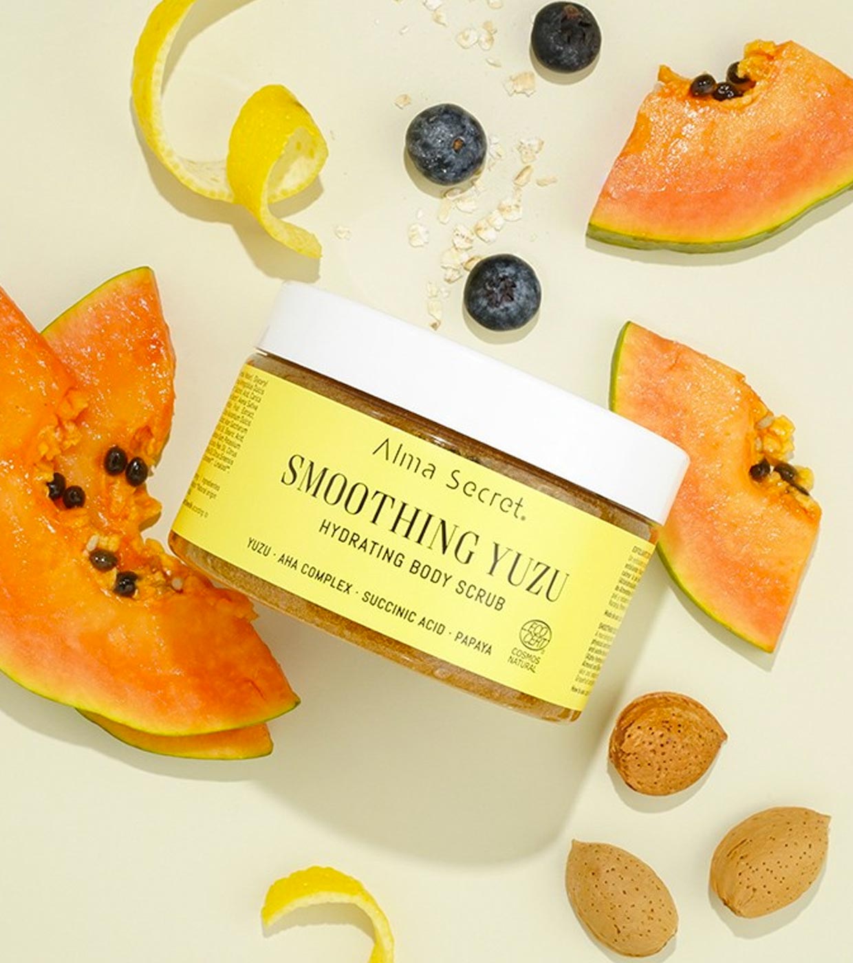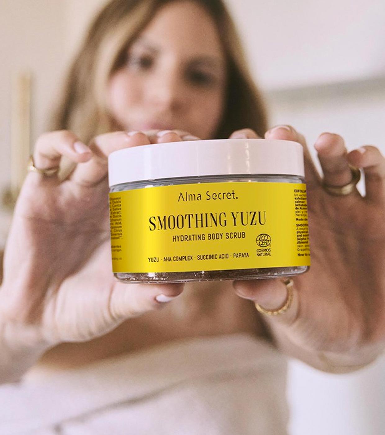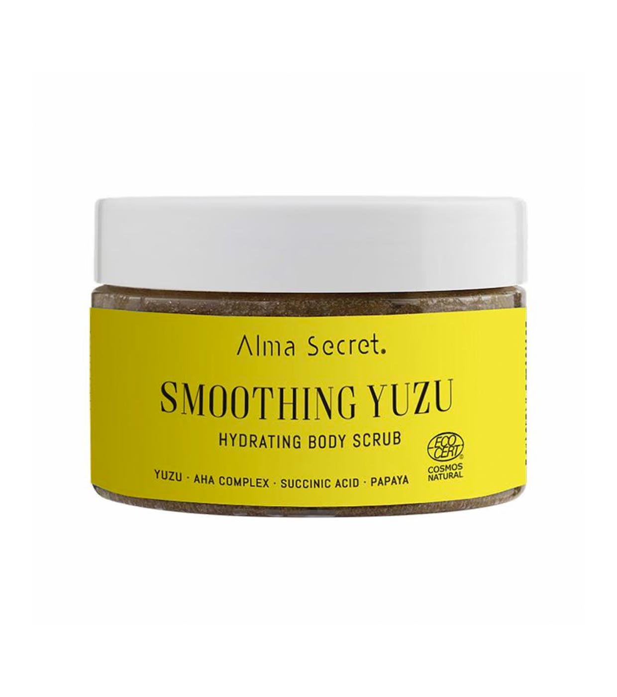 Smoothing Yuzu Hydrating Body Scrub da Alma Secret é um esfoliante corporal nutritivo que transforma a pele seca, escamosa ou áspera em uma pele lisa, macia e luminosa.