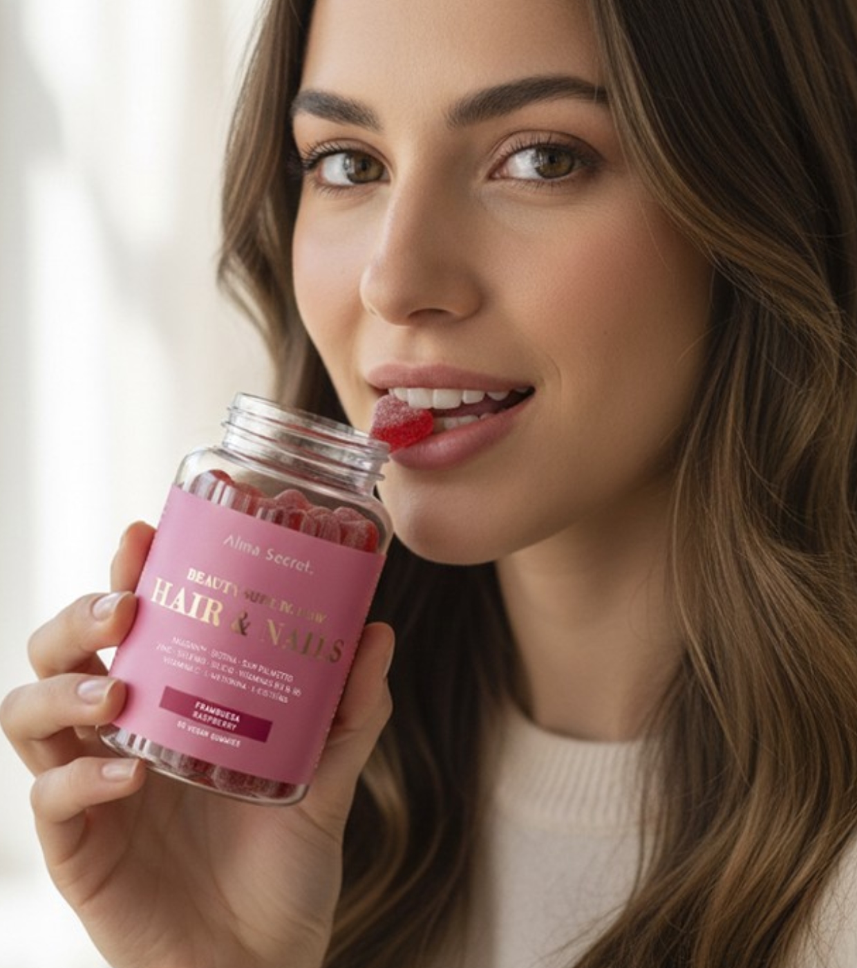 Obtenha cabelos mais fortes e unhas mais resistentes com estas gomas da Alma Secret, formuladas com 11 ingredientes ativos naturais cuidadosamente selecionados para atuarem em sinergia.