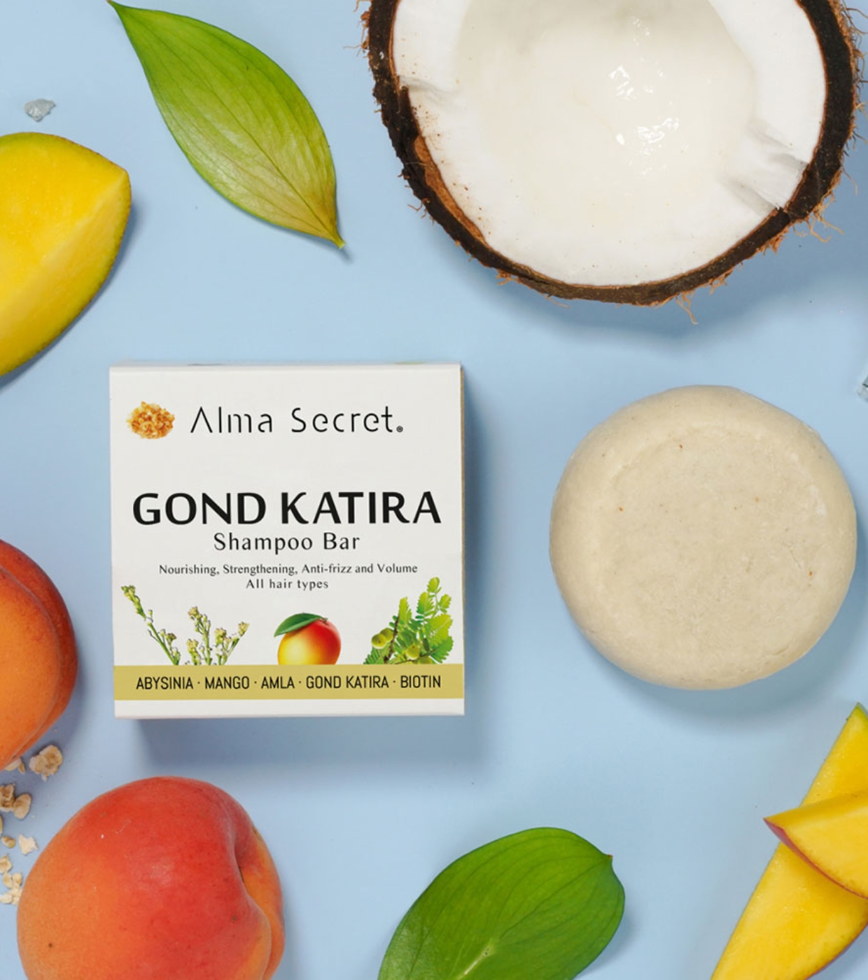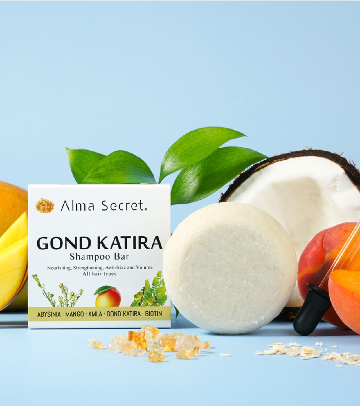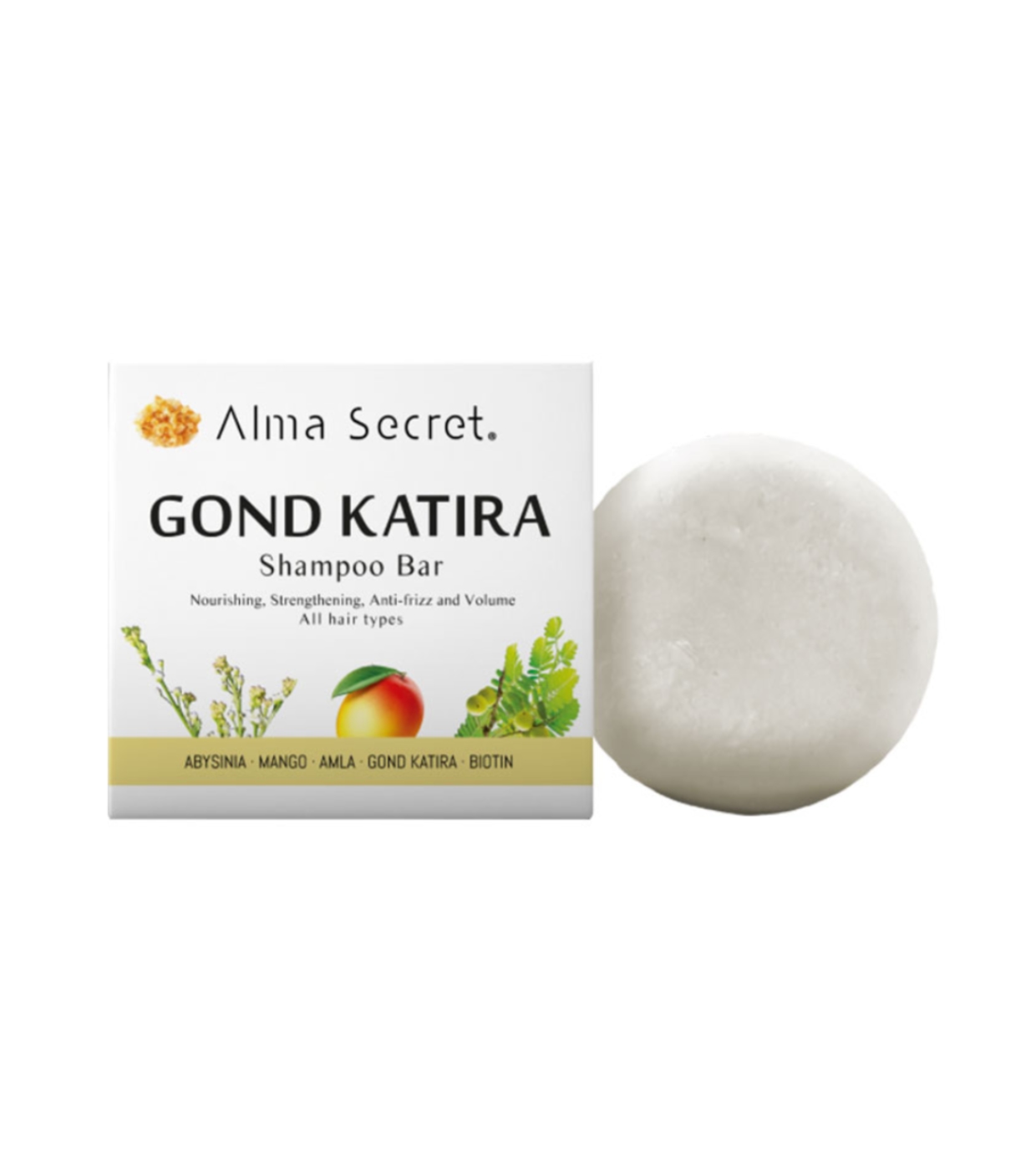 Conheça o shampoo sólido fortalecedor e hidratante Gond Katira da Alma Secret e desfrute de um produto fortalecedor, hidratante, anti-frizz e volume.