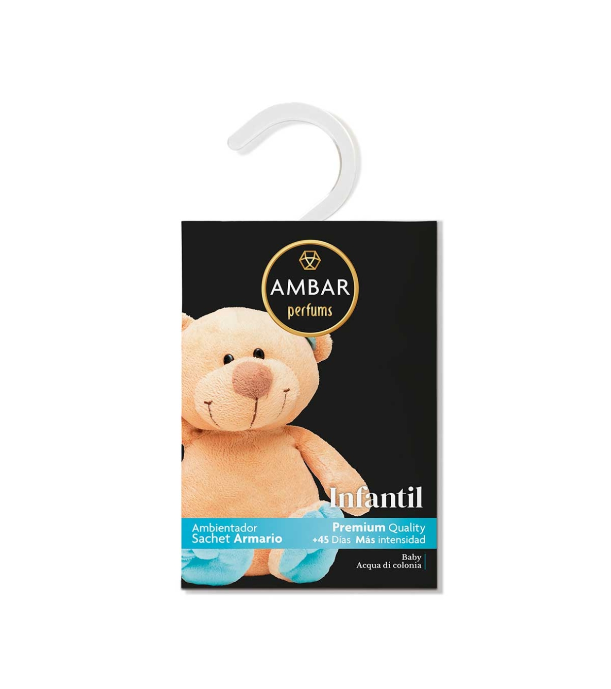 Perfume seu guarda-roupa com uma fragrância suave, fresca e delicada, ideal para criar um ambiente limpo e agradável com este ambientador para guarda-roupa da AMBAR Perfums.