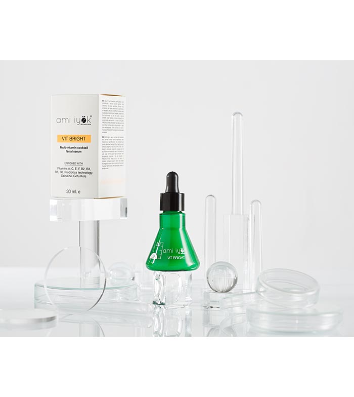 Um soro com um coquetel de vitaminas solúveis em água e solúveis em gordura (VIT A, VIT C, VIT E, F, B2, B3, B5, B6) em uma emulsão inversa para permitir que sejam combinados em uma única fórmula no ideal concentrações e um PH totalmente respeitoso com as peles mais sensíveis.