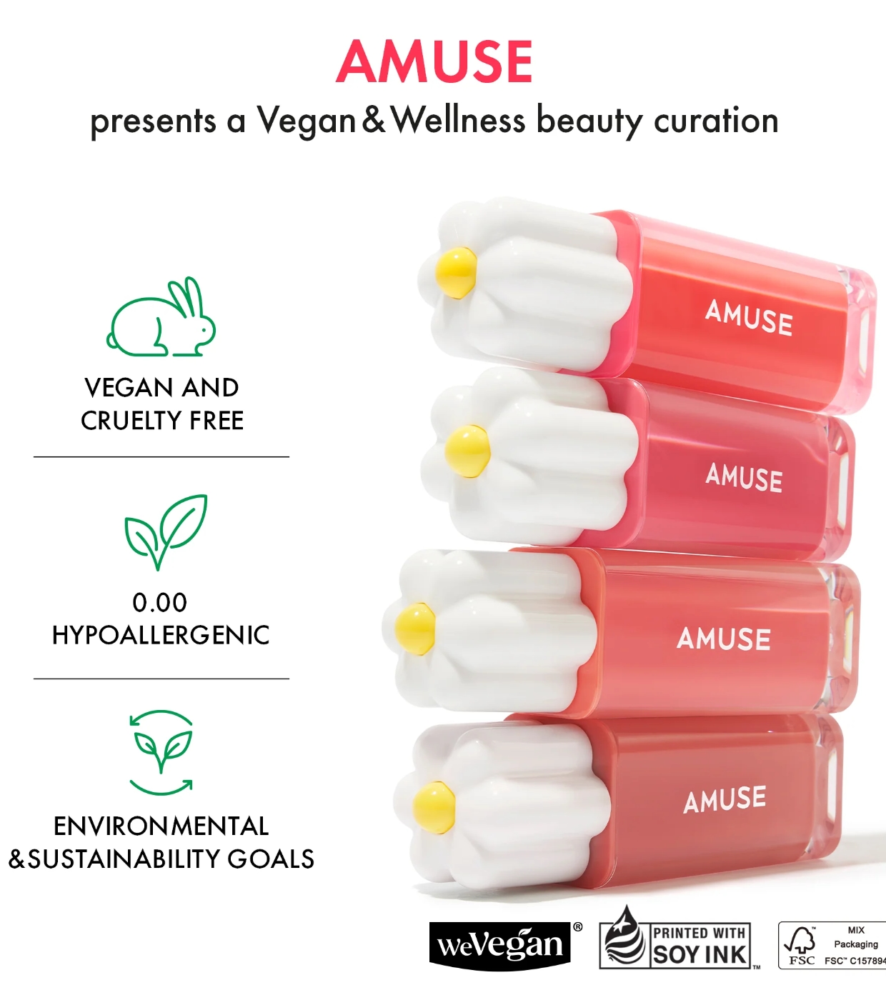 O Dew Tint da AMUSE é um batom vegano, leve e à base de água que proporciona um acabamento suculento, brilhante e natural.