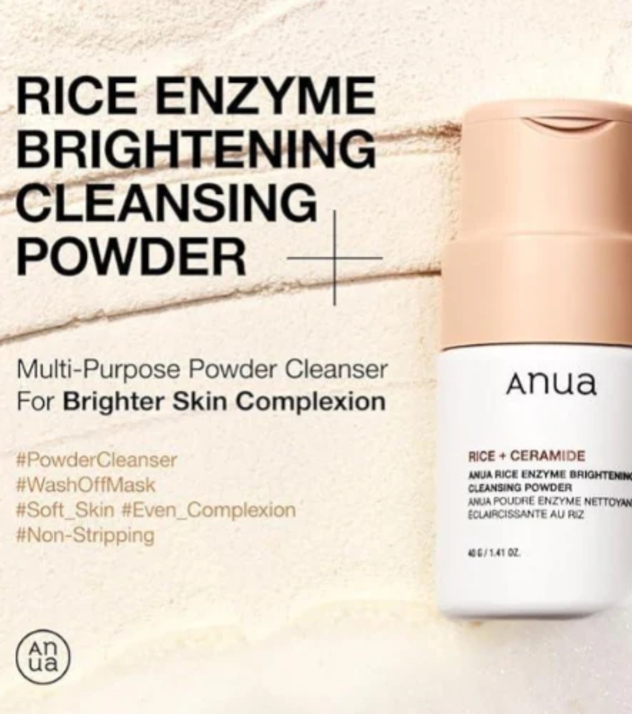 O Rice Enzyme Brightening Cleansing Powder da Anua é um produto de limpeza facial inovador, pois combina esfoliação suave e cuidados com a pele em uma única etapa.