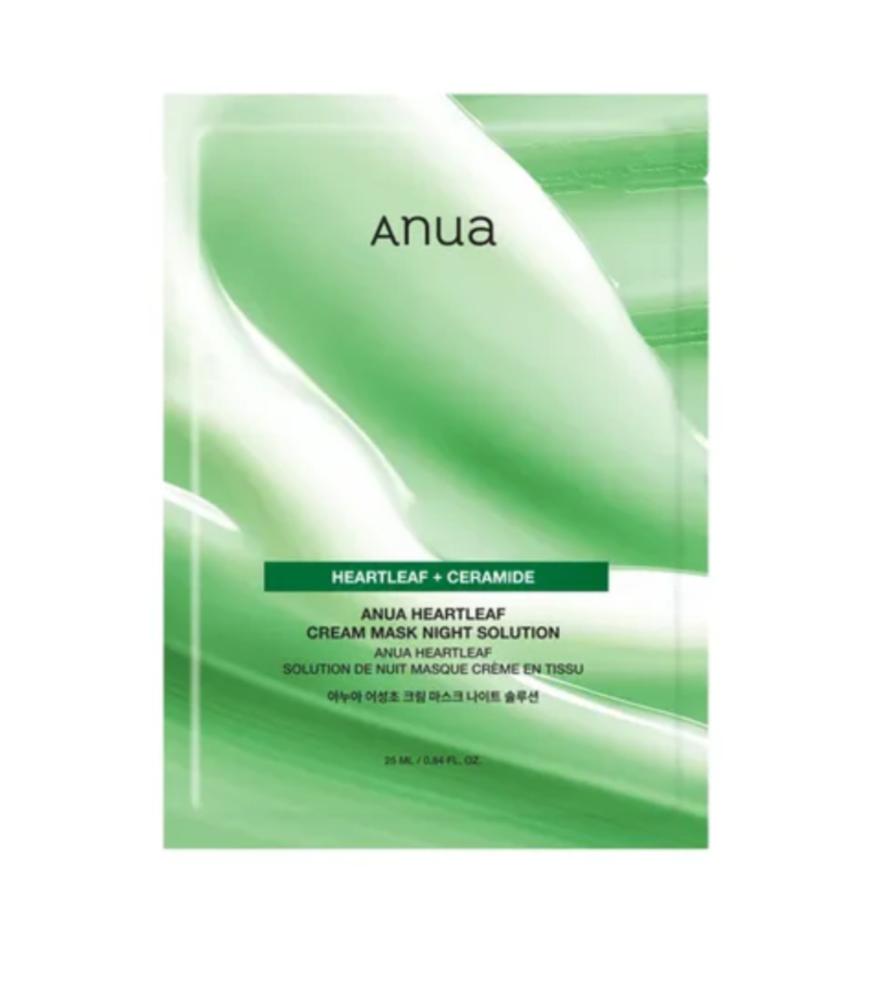 Acorde com uma pele renovada graças à Heartleaf Cream Mask Night Solution da Anua , uma máscara noturna cremosa que acalma, hidrata e repara sua pele enquanto você dorme.