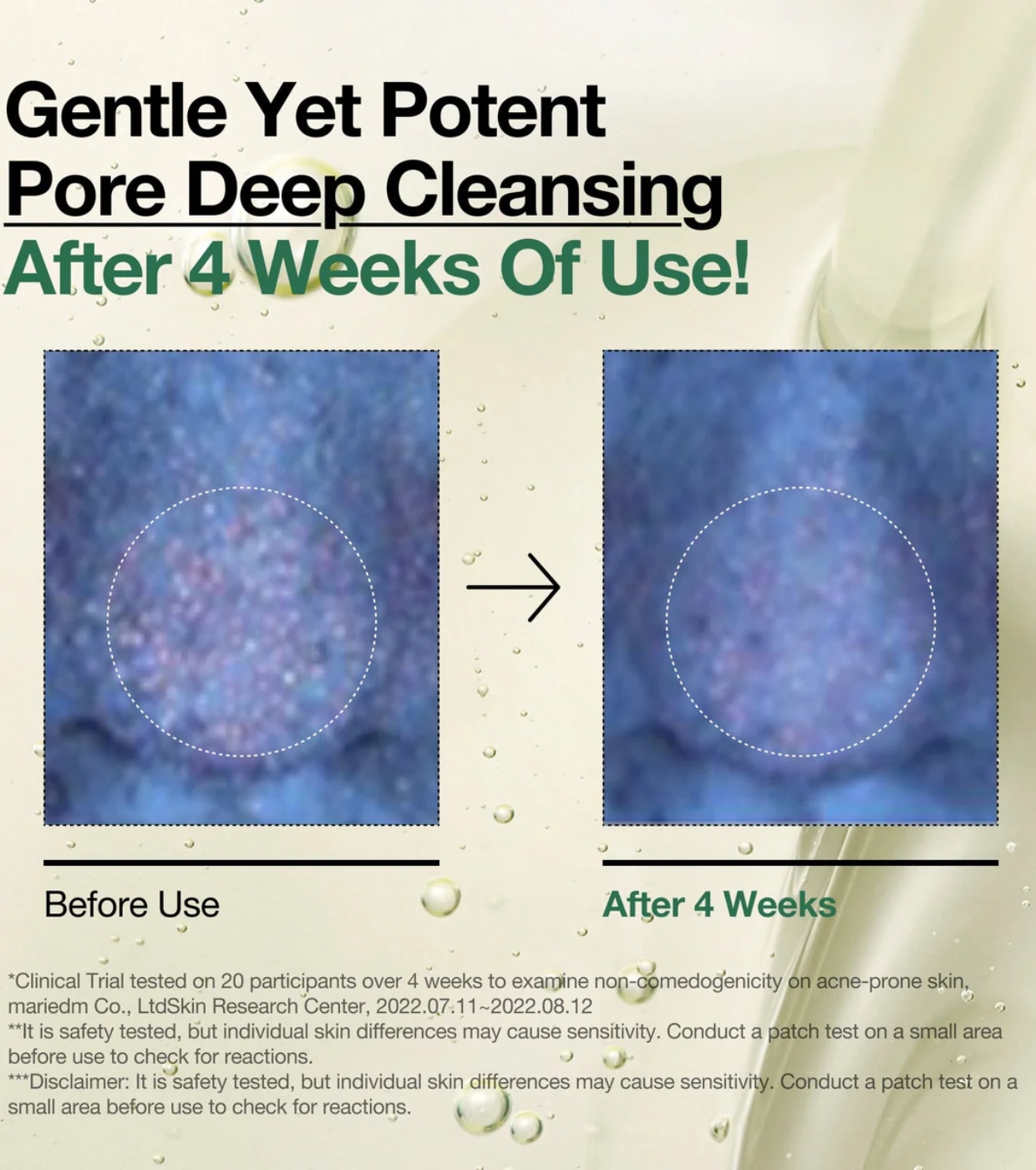- Limpeza profunda: Dissolve a sujeira e o excesso de sebo, desobstruindo os poros entupidos e reduzindo os cravos.