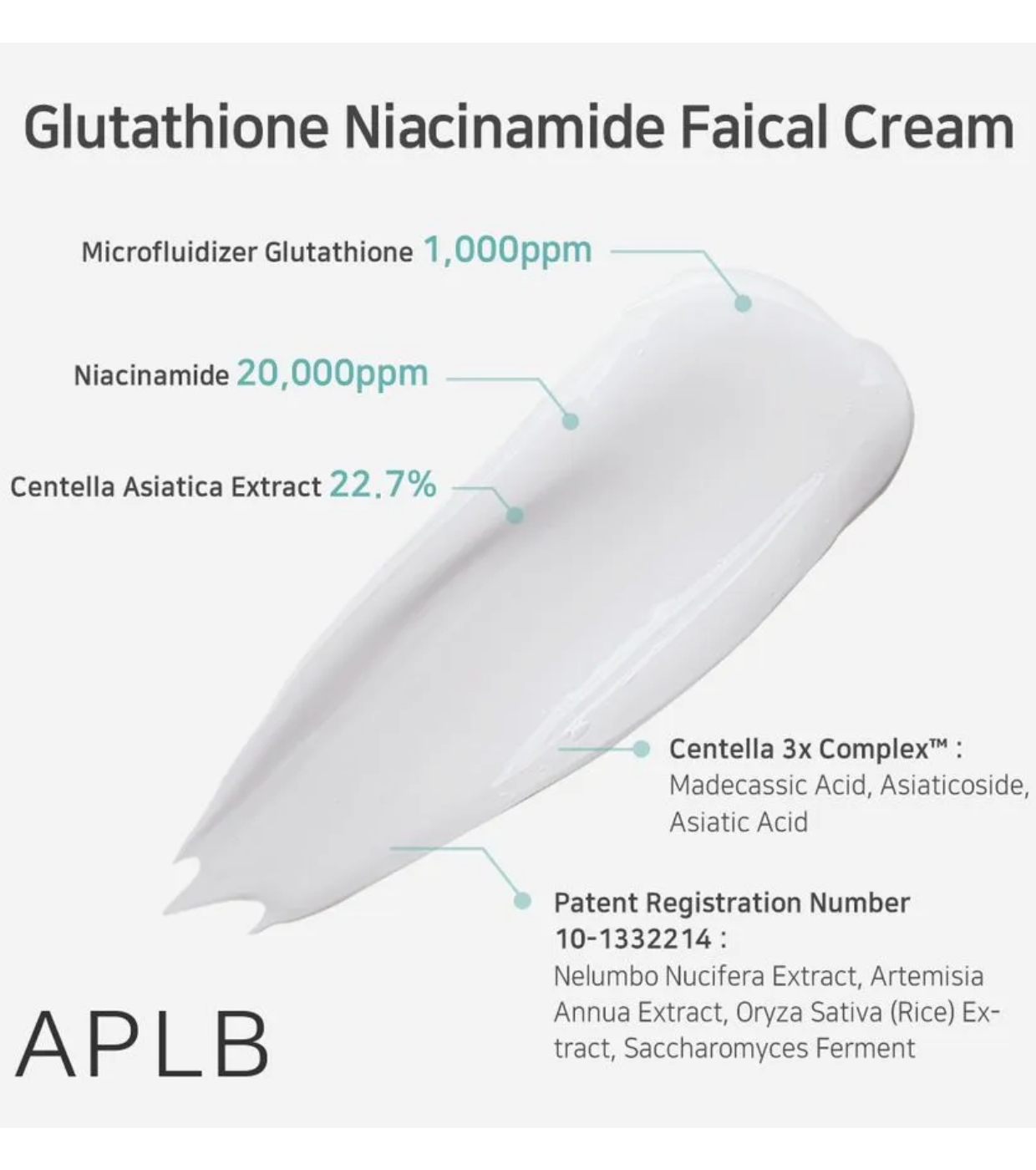 O Glutathione Niacinamide Facial Cream da APLB é um creme facial leve e multifuncional que hidrata, acalma e melhora a luminosidade da pele, proporcionando elasticidade, firmeza e uma aparência saudável.