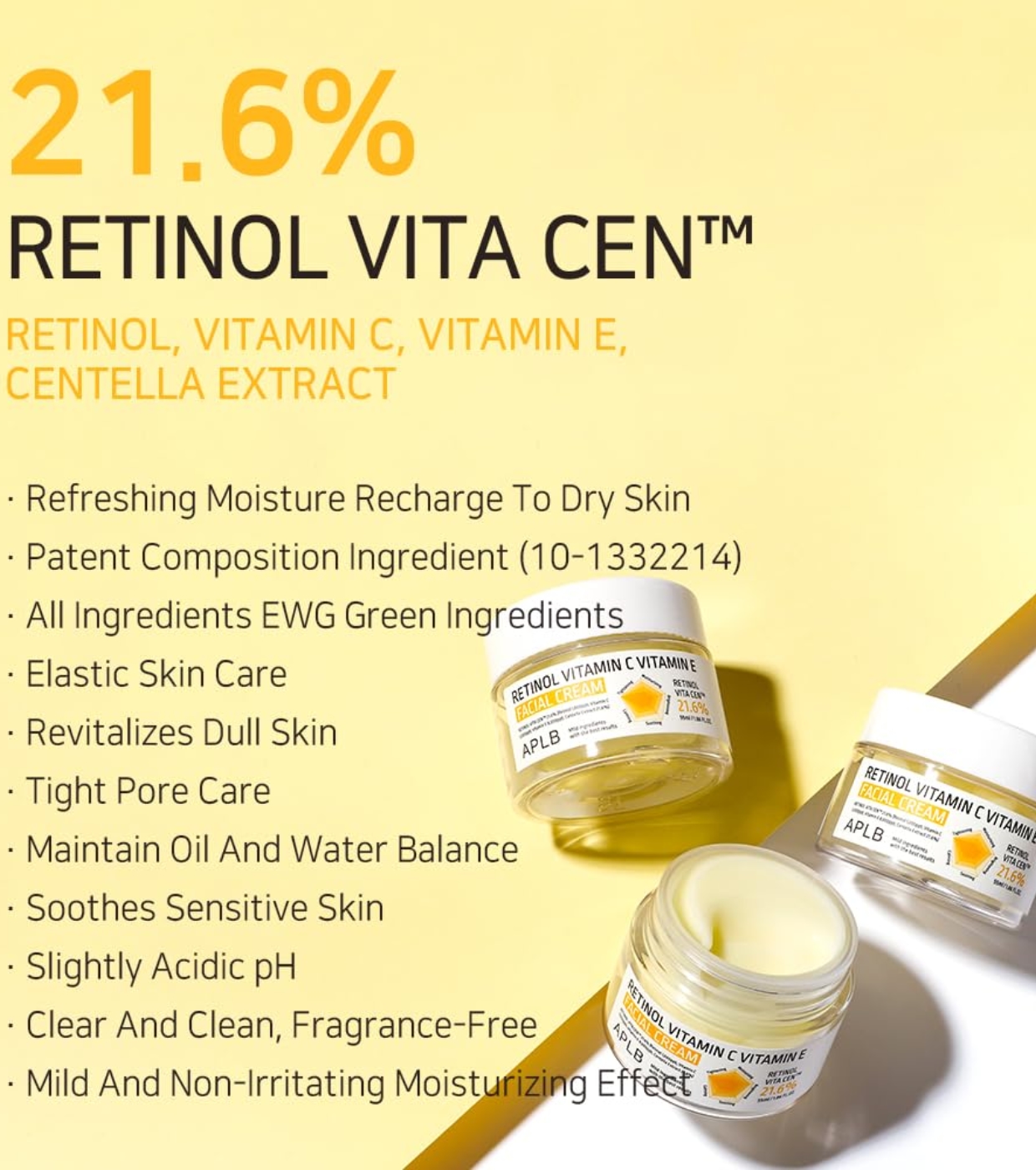 Retinol Vitamin C Vitamin E Facial Cream O Creme Facial com Retinol, Vitamina C e Vitamina E é um creme facial antienvelhecimento multifuncional formulado para melhorar a firmeza, a textura e o brilho da pele madura ou envelhecida.