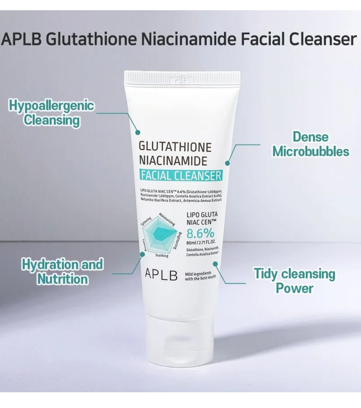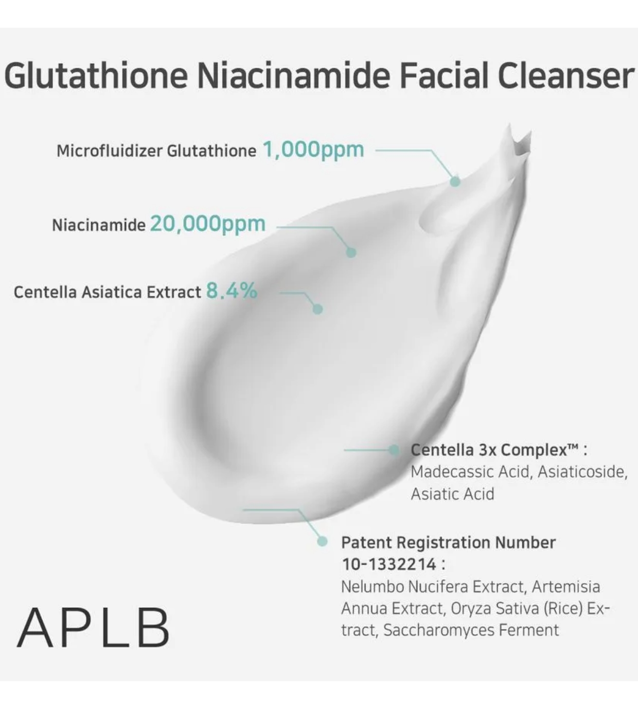 O Glutathione Niacinamide Facial Cleanser da APLB é um limpador facial diário suave que limpa profundamente a pele sem ressecá-la ou prejudicar seu equilíbrio natural.
