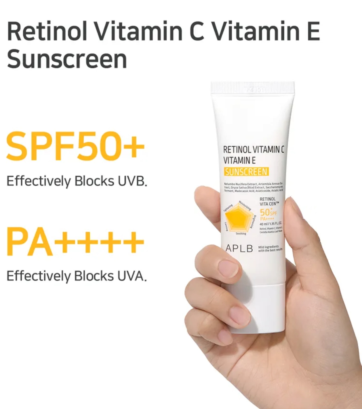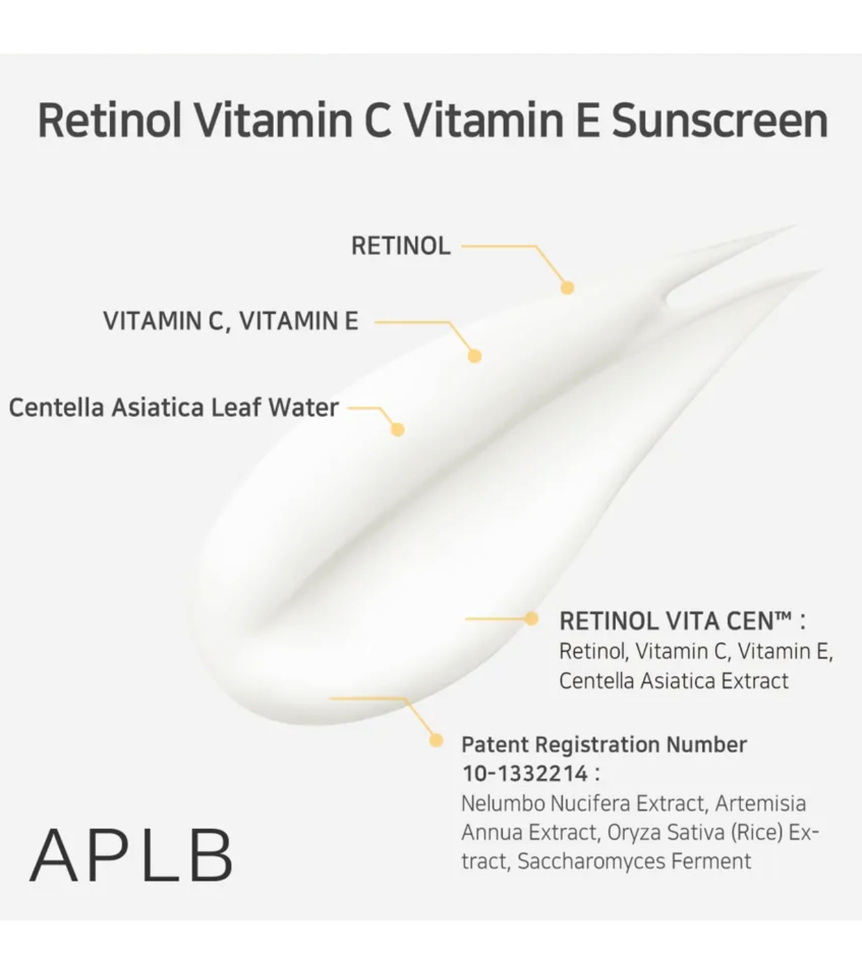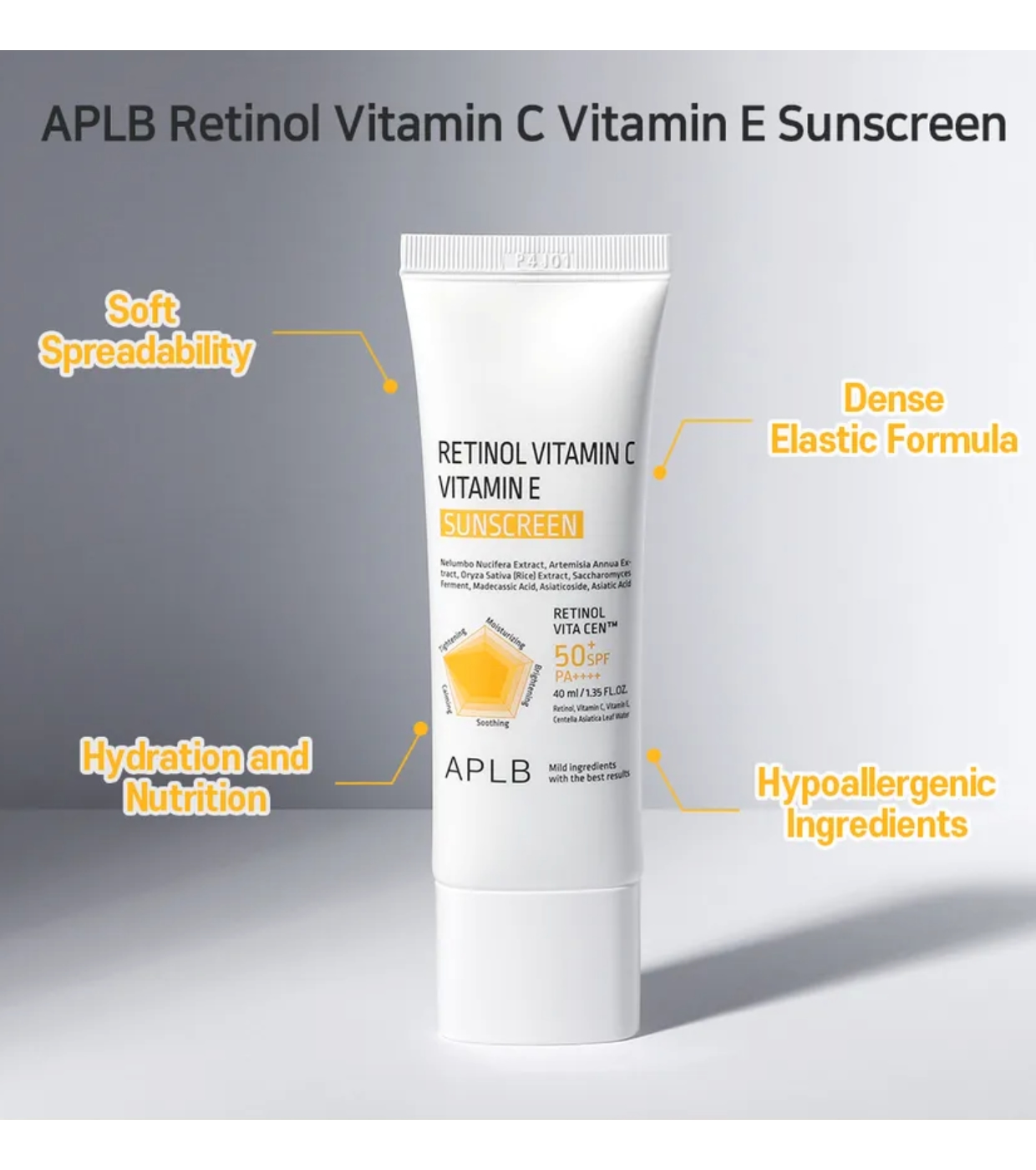 O Retinol Vitamin C Vitamin E Sunscreen SPF50+ PA++++ da APLB é muito mais do que apenas um protetor solar: é um tratamento antienvelhecimento completo que combina alta proteção solar com ingredientes antioxidantes e regeneradores para uma pele mais jovem, luminosa e saudável.