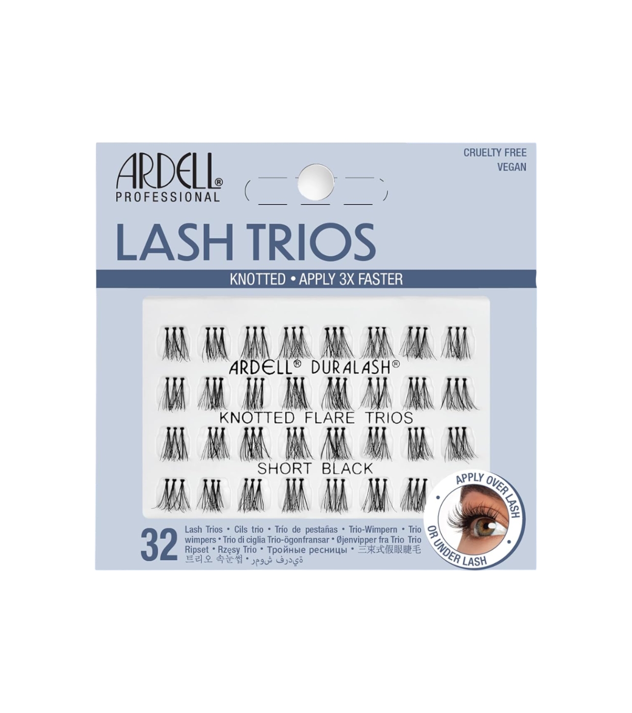 Três grupos de cílios individuais em uma faixa de cílios para uma aplicação mais rápida e fácil com fibras de ponta cônica de toque suave.