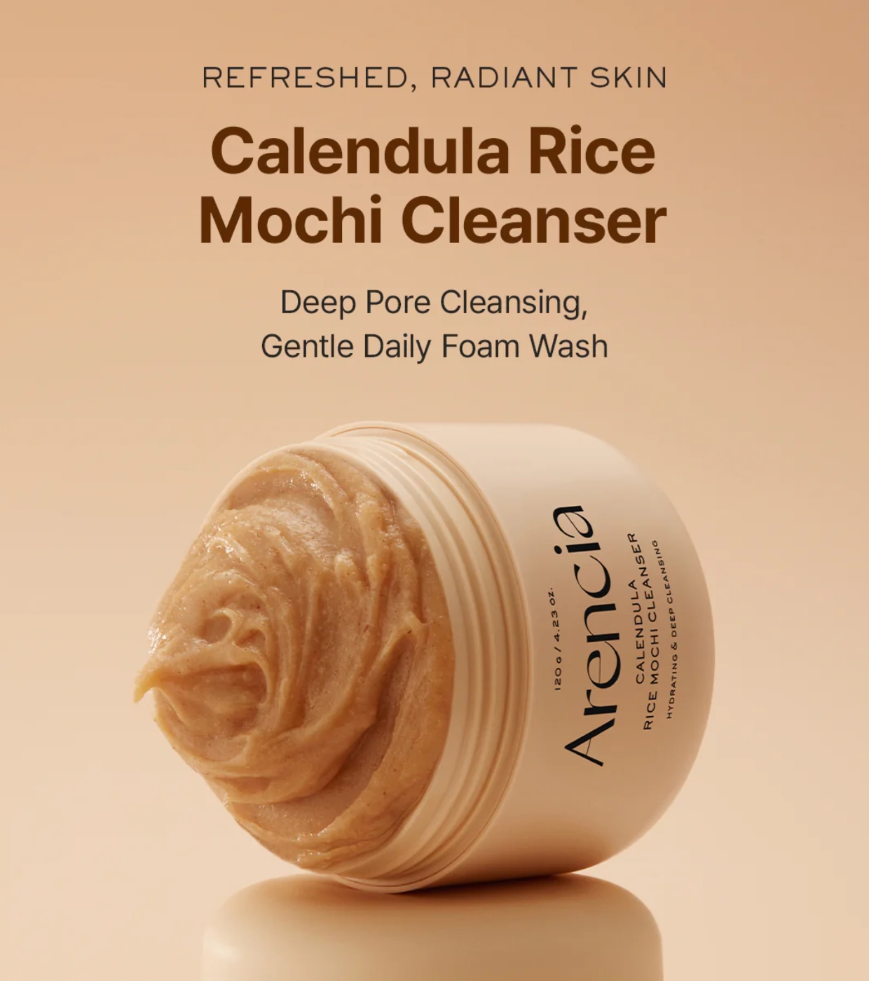 O Calendula Rice Mochi da Arencia é um limpador facial espumante de uso diário, formulado para acalmar, confortar e proteger a pele sensível, seca ou irritada.