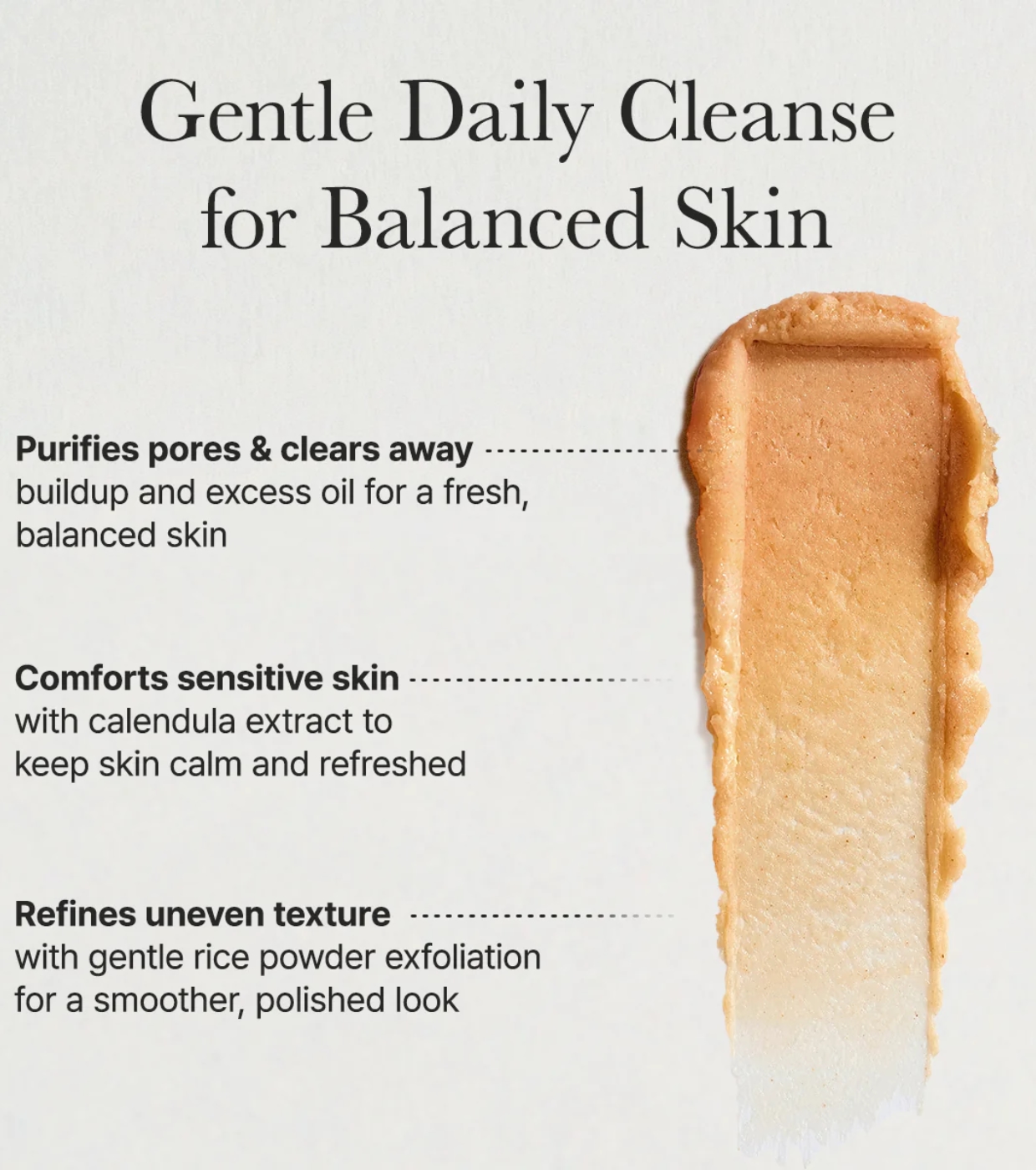 Sua combinação de ingredientes botânicos limpa suavemente o rosto, removendo impurezas sem comprometer a hidratação ou a barreira cutânea.
