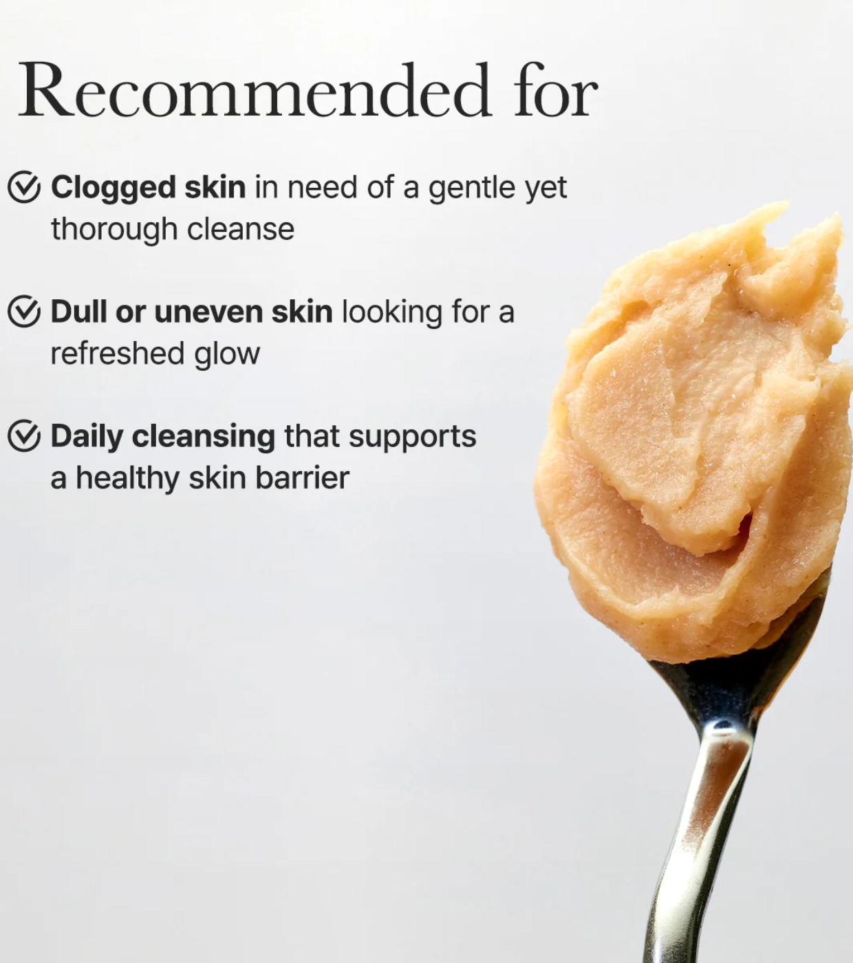 É ideal para integrar na rotina diária de cuidados faciais de peles secas, sensíveis ou ásperas que necessitam de uma limpeza suave e eficaz.