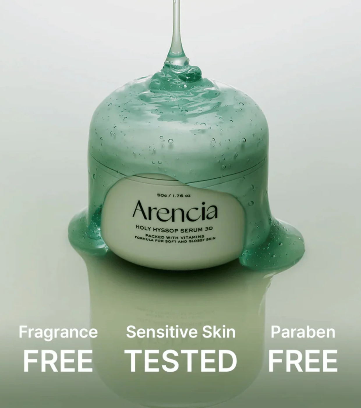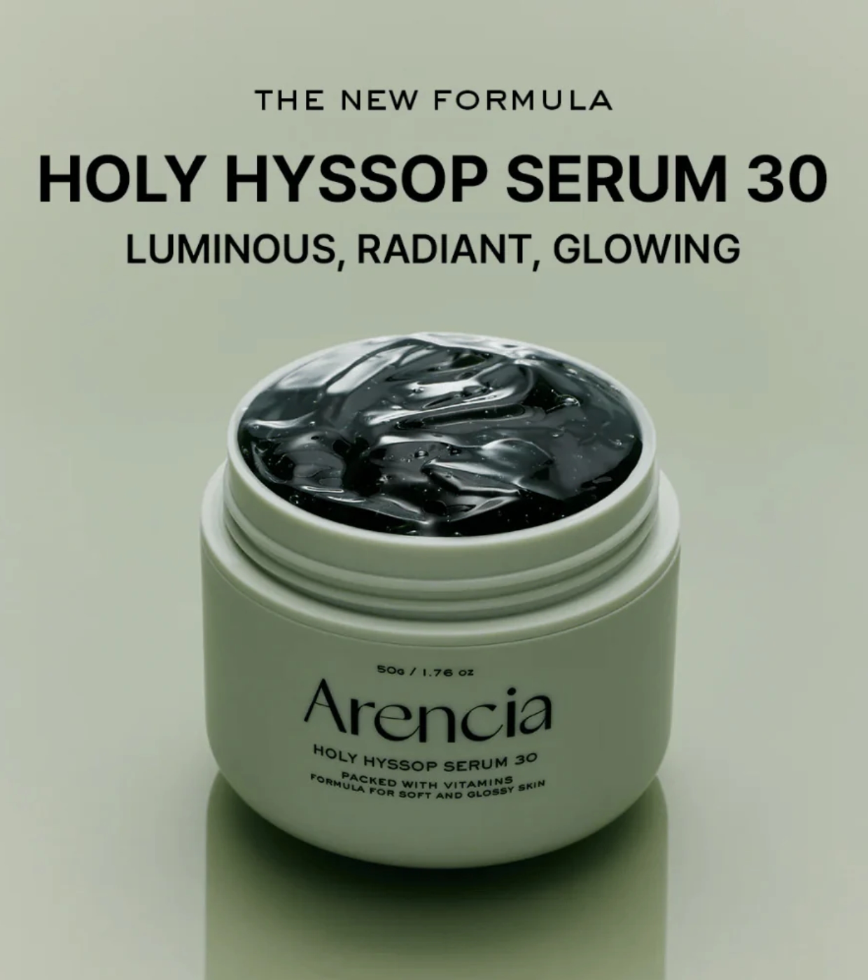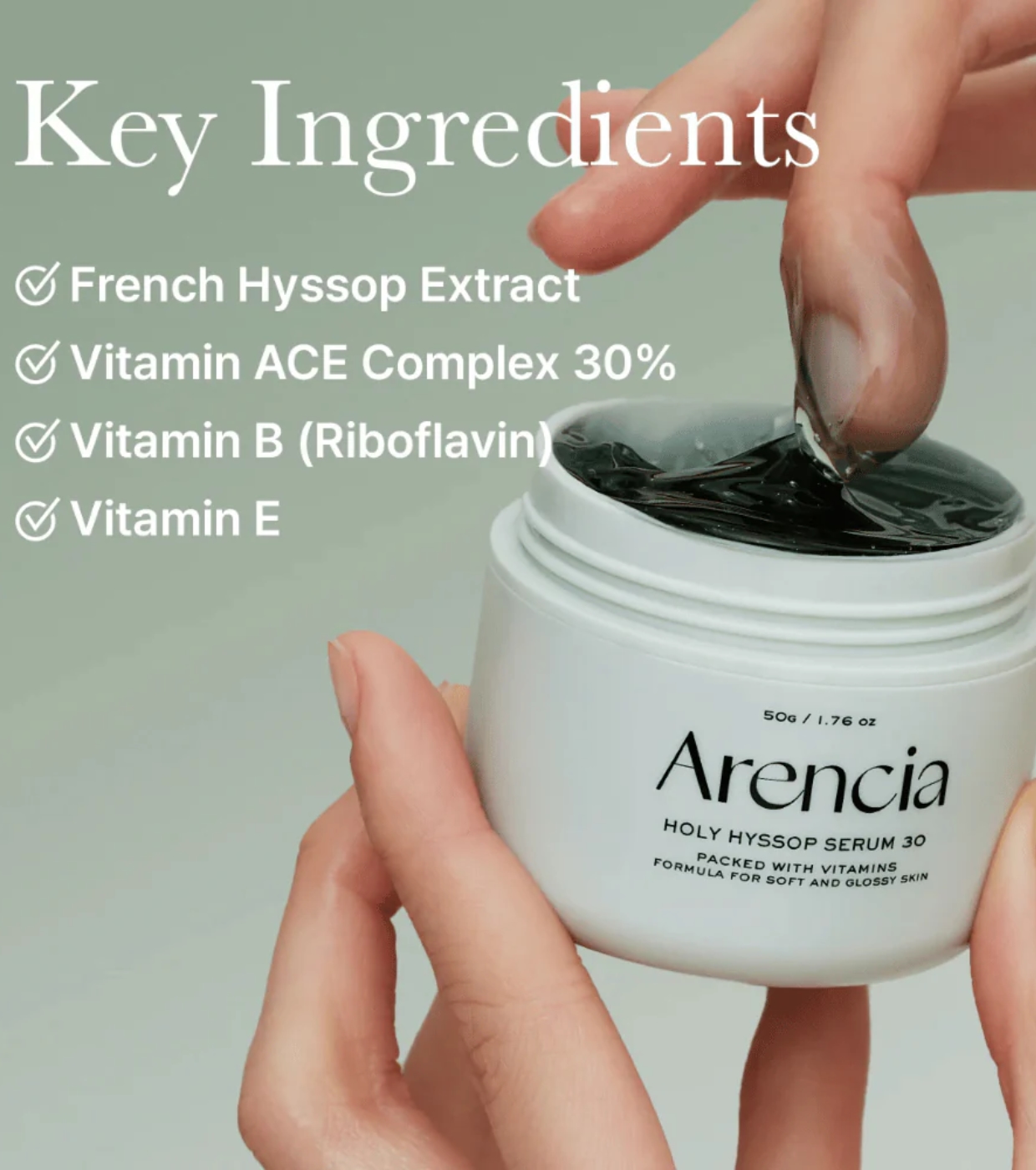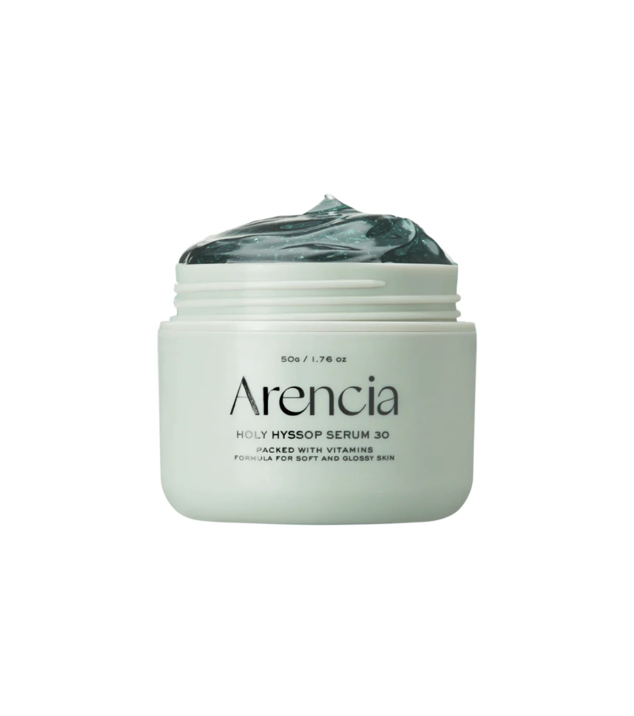 Este sérum com textura de gel Holy Hyssop Serum 30 da Arencia foi formulado para combater a hiperpigmentação, iluminar a tez e melhorar a textura da pele sem deixar uma sensação oleosa.