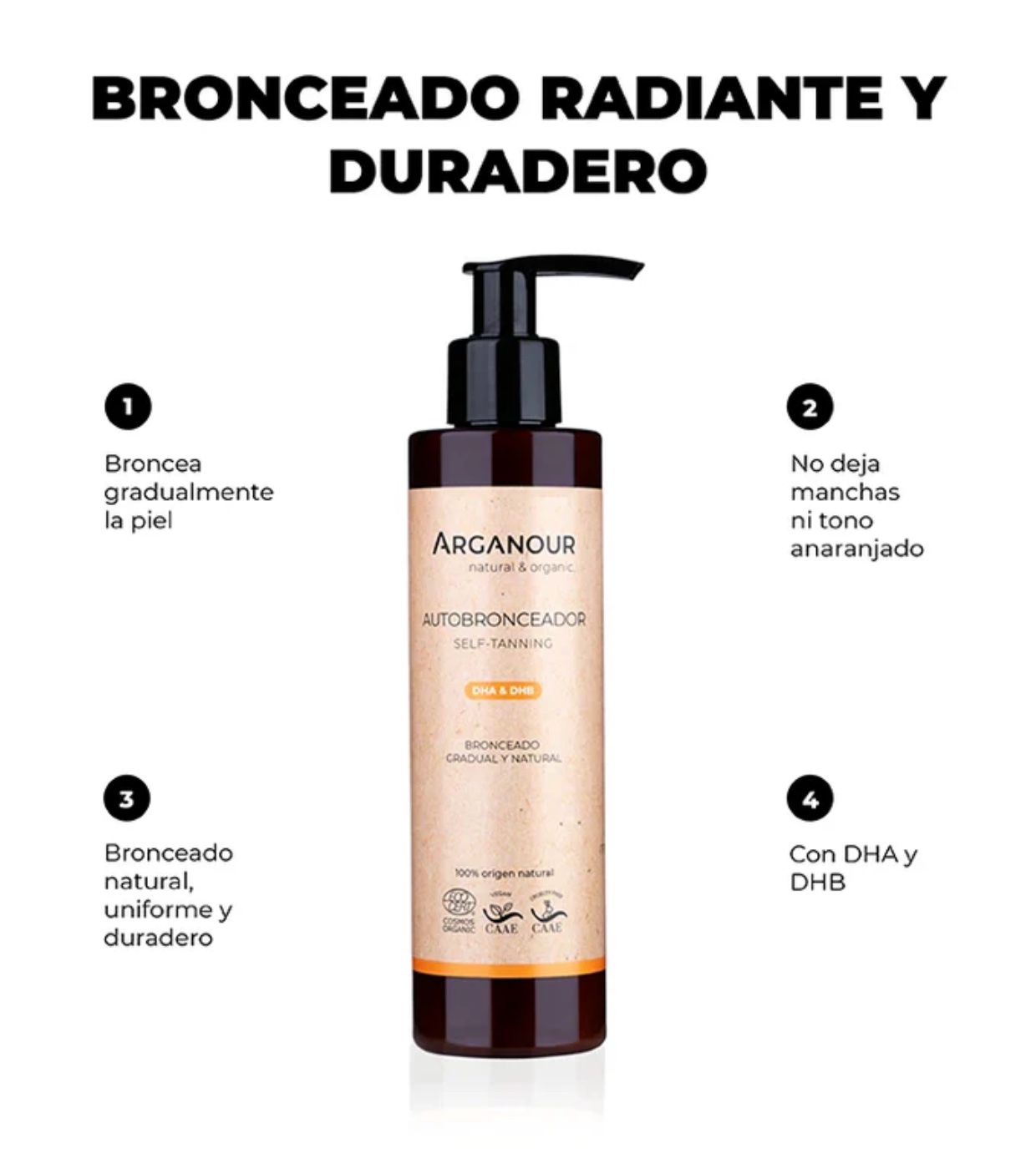 O autobronzeador da Arganour é a melhor opção para conseguir uma pele bronzeada, hidratada e radiante o ano todo, sem os efeitos nocivos da exposição solar.