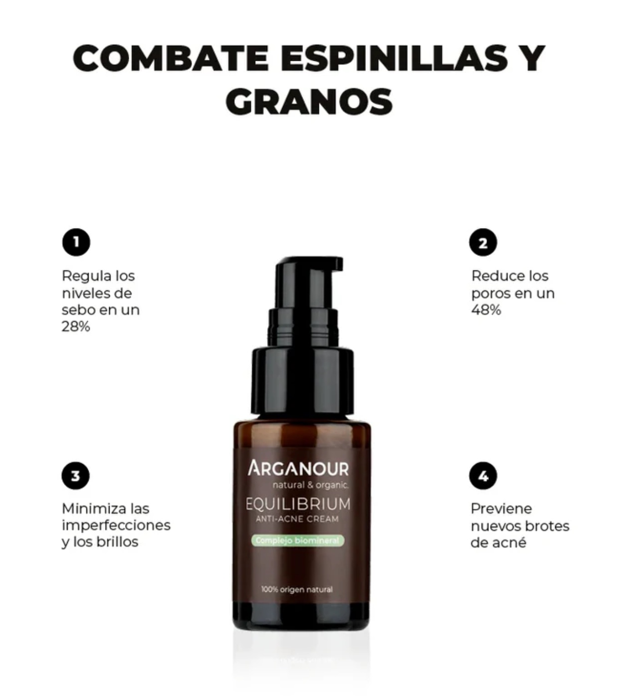 O creme de ação rápida para acne da Arganour ajuda a tratar a acne em adultos e adolescentes graças aos seus ingredientes ativos 100% naturais.