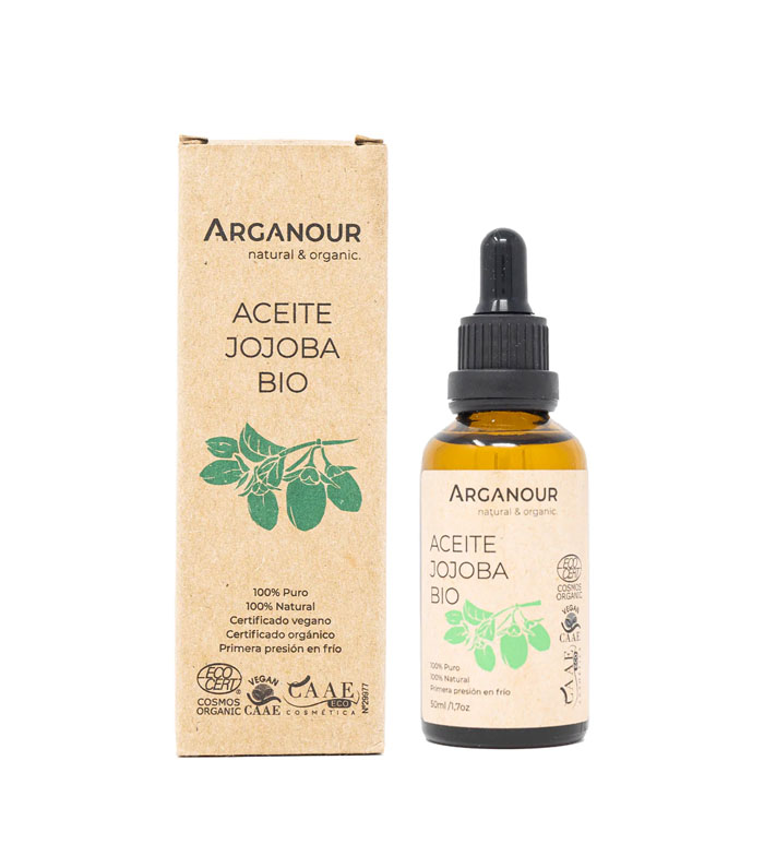 O óleo de jojoba orgânico é certificado como vegano e livre de crueldade pela CAAE e orgânico pela COSMOS.