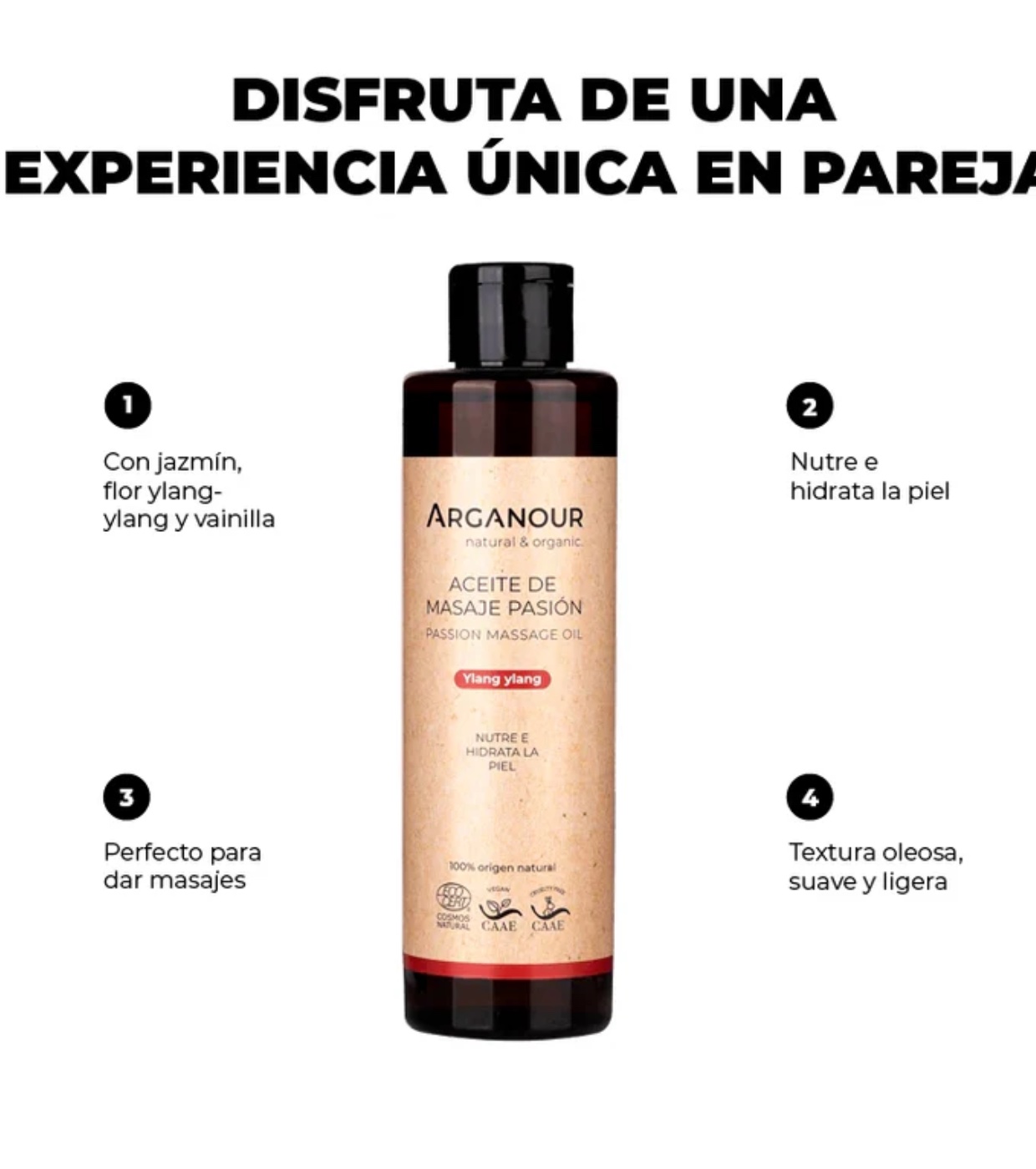 Viva uma experiência única a dois com o óleo de massagem Passion 100% natural da Arganour . Ele despertará todos os seus sentidos e permitirá que você desfrute de um momento inesquecÃvel com a pessoa amada.