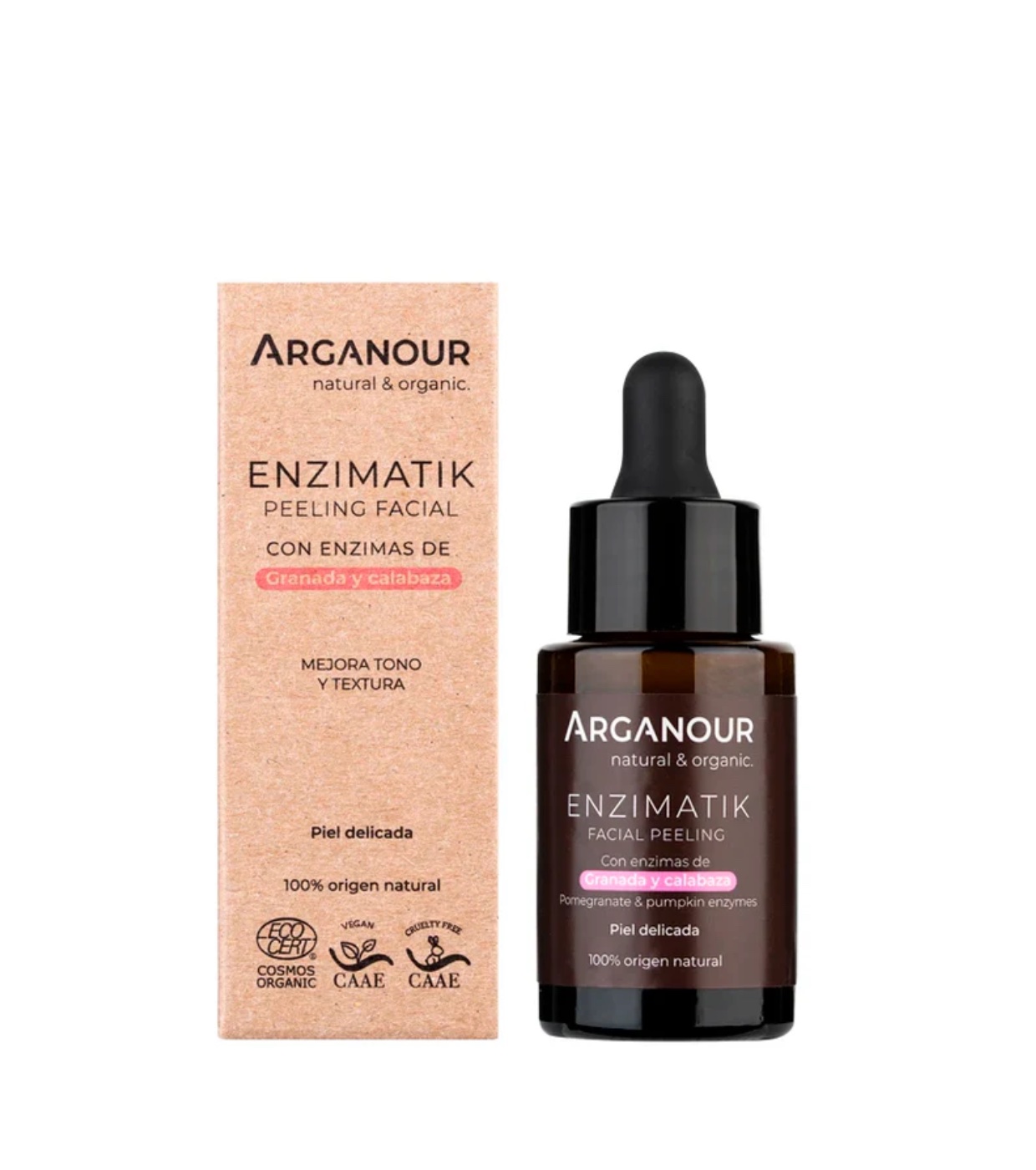 O Enzimatik da Arganour é um peeling enzimático inovador que esfolia suavemente a pele, promove a renovação celular e reduz imperfeições graças à ação de ácidos AKA de última geração e enzimas de romã e abóbora.
