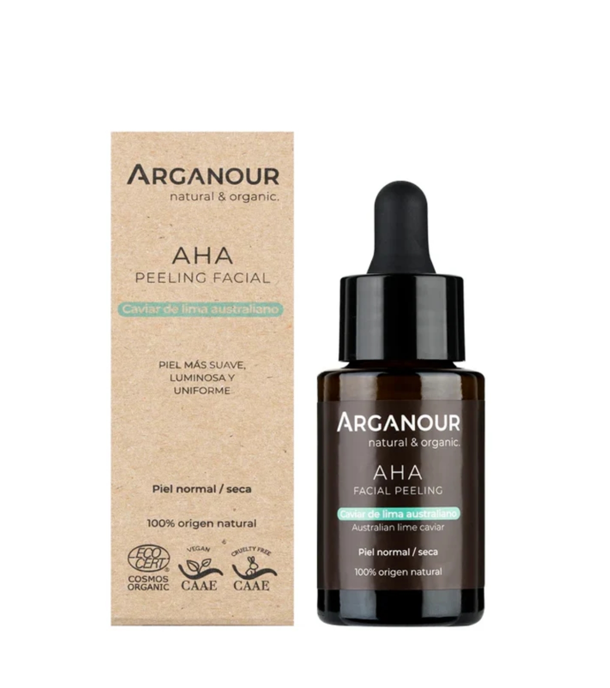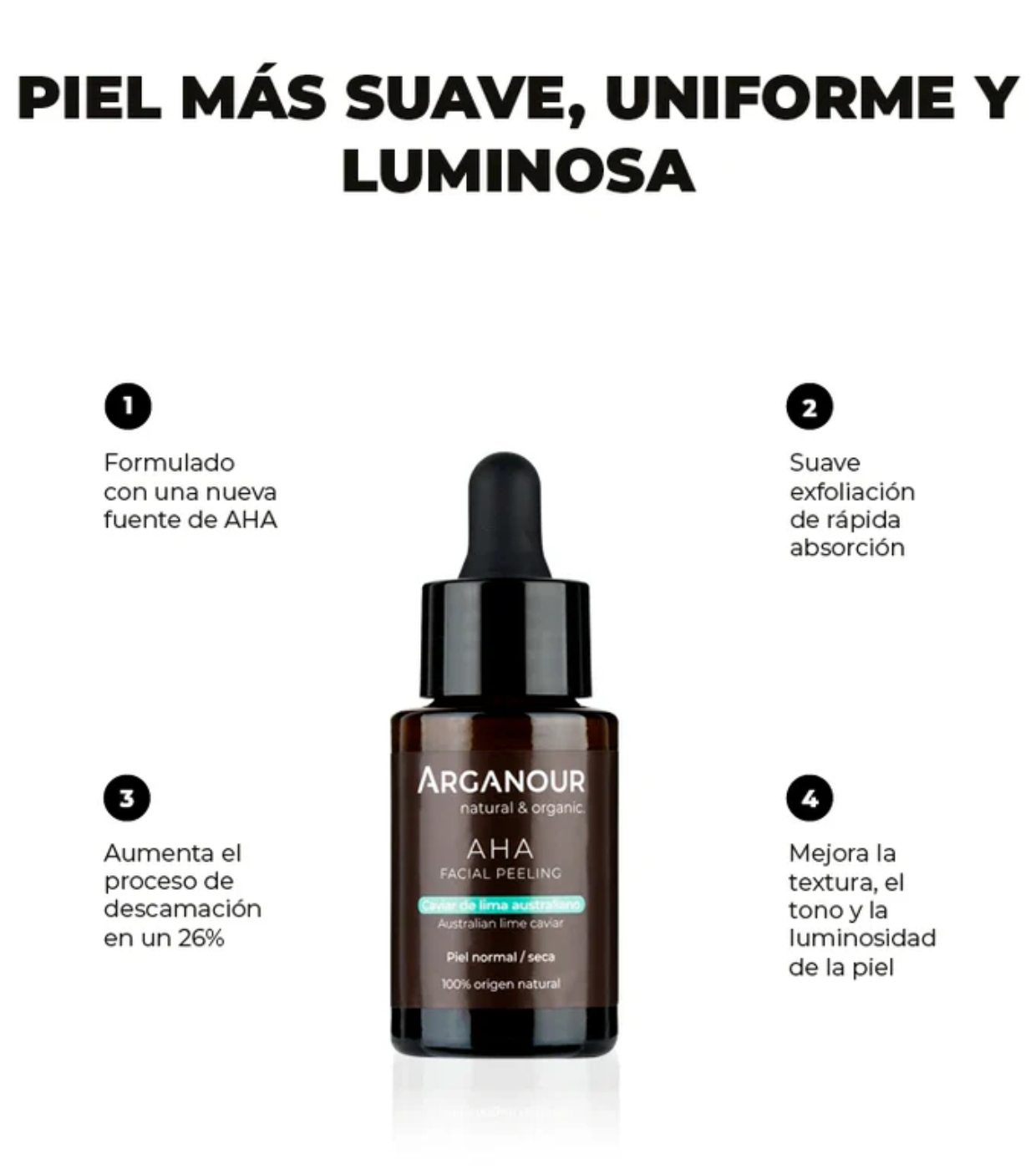 Pele macia, luminosa e unificada com o esfoliante AHA da Arganour .