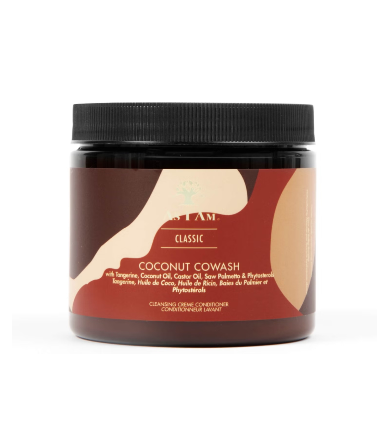 Coconut Cowash por As I Am é um creme de limpeza com uma fórmula sem espuma que remove suavemente resíduos e produtos que você usa para manter os cachos.