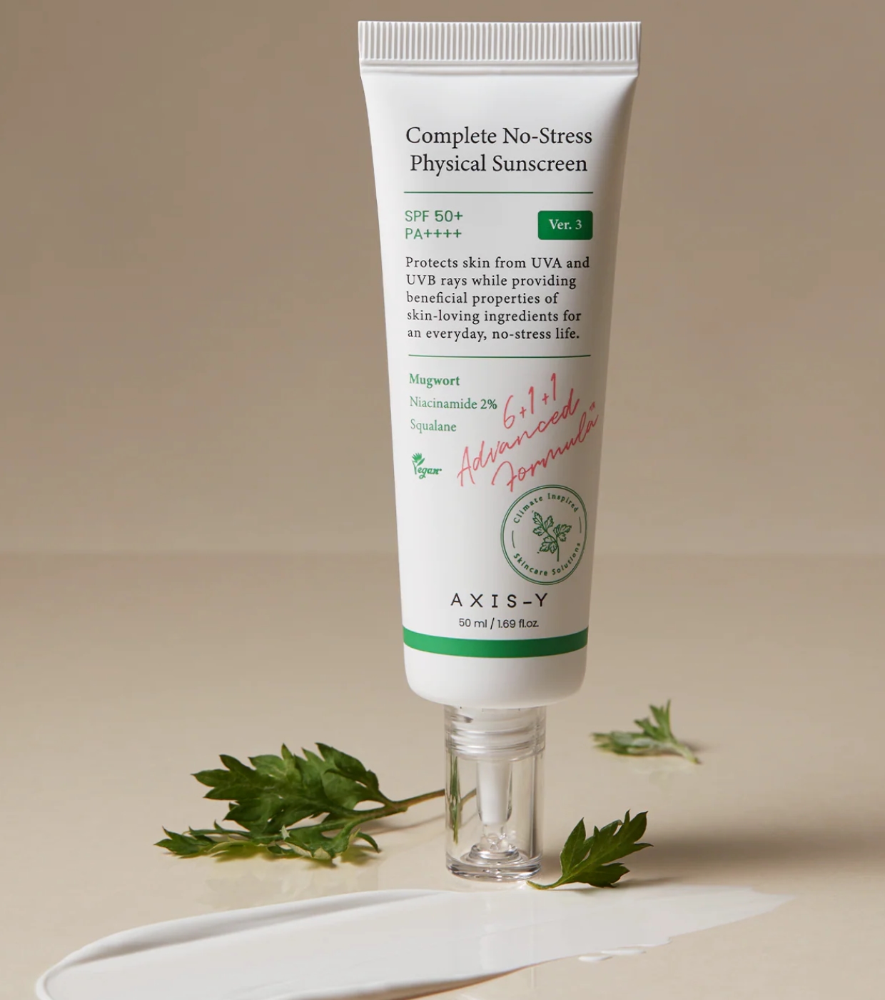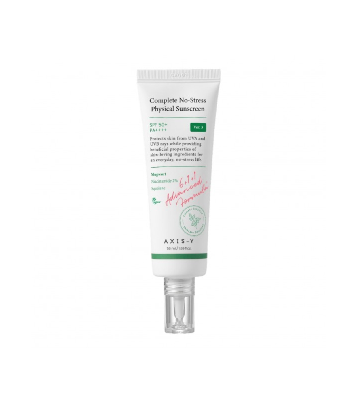 Proteja sua pele sem estresse com o Complete No-Stress Physical Sunscreen da Axis-Y, um protetor solar mineral com textura leve em gel que derrete imediatamente, sem deixar resíduos brancos ou sensação oleosa.