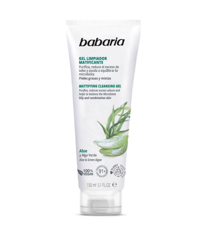 Um gel de limpeza matificante formulado com aloe vera e extrato de algas verdes.