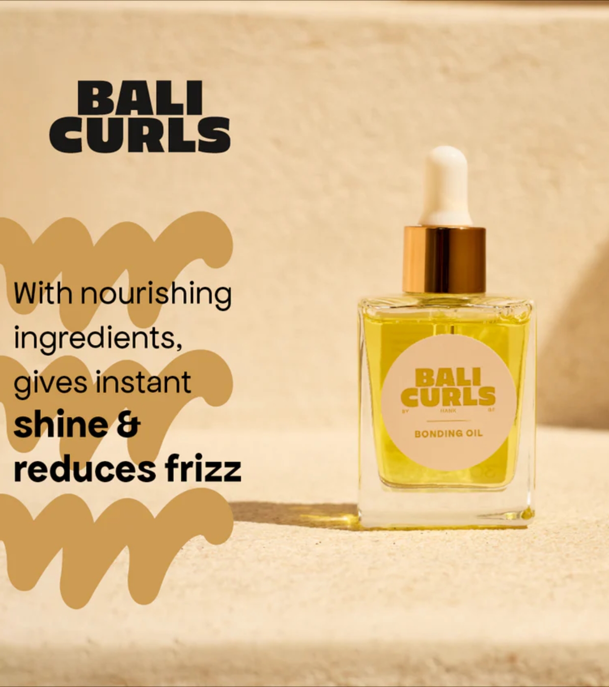O óleo Bali Curls proporciona brilho instantâneo e ajuda a reduzir o frizz de forma eficaz.