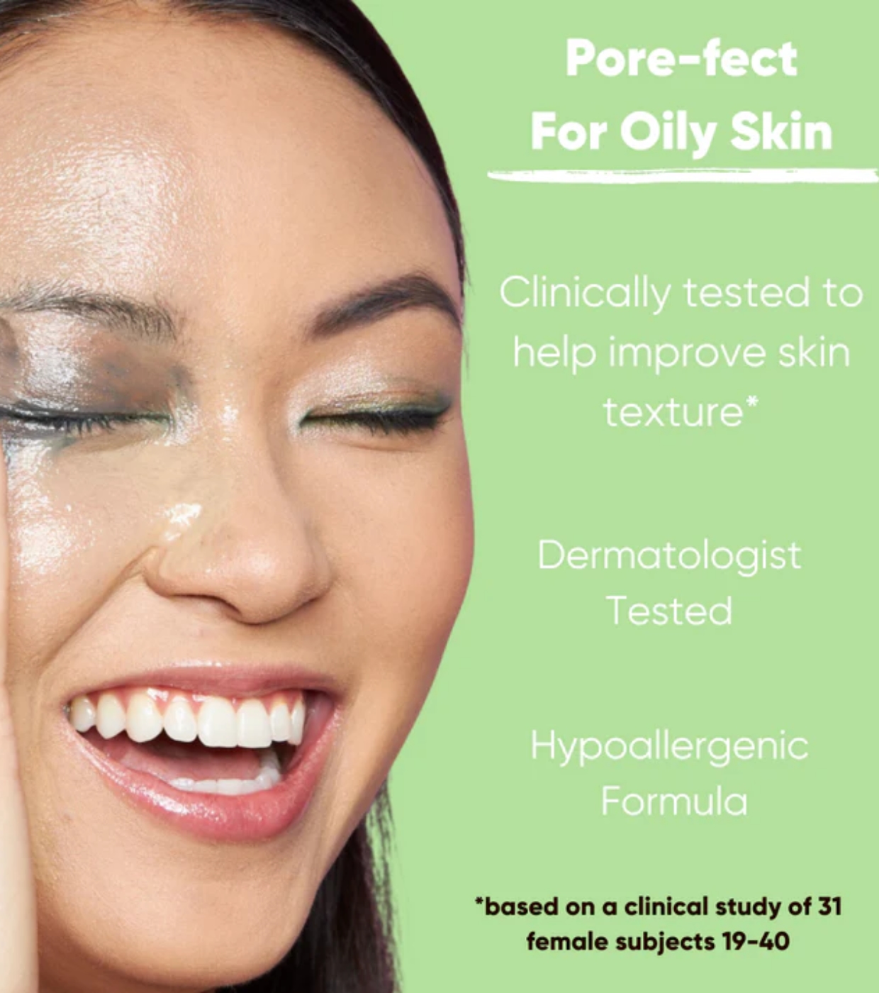 Sua fórmula remove facilmente maquiagem à prova d'água, protetor solar e impurezas, ao mesmo tempo que reduz o excesso de sebo e células mortas da pele que obstruem os poros.