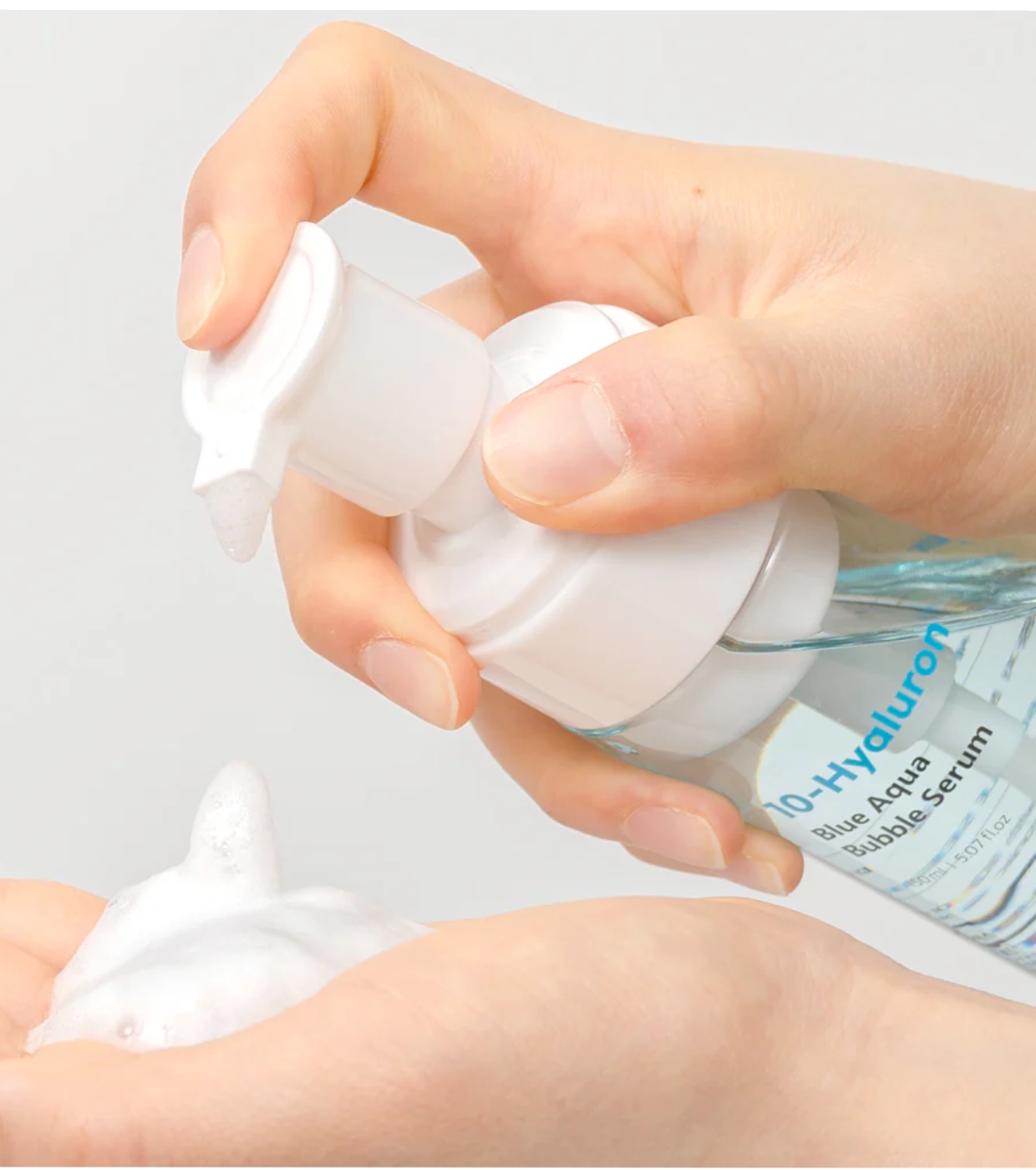 O 10-Hyaluron Blue Aqua Bubble Serum da Brulab é um tratamento inovador em forma de espuma que proporciona hidratação intensiva, alívio imediato e reforço da barreira da pele desde a primeira aplicação.