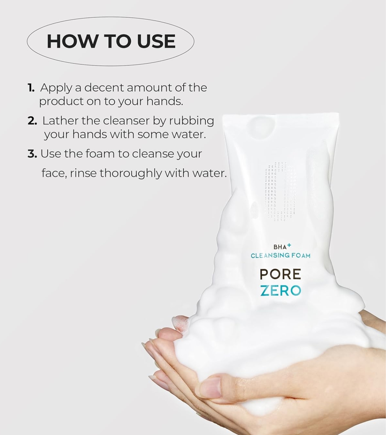 Aplique uma pequena quantidade nas mãos molhadas, massageie no rosto até formar uma espuma macia e suave e enxágue bem com água morna.