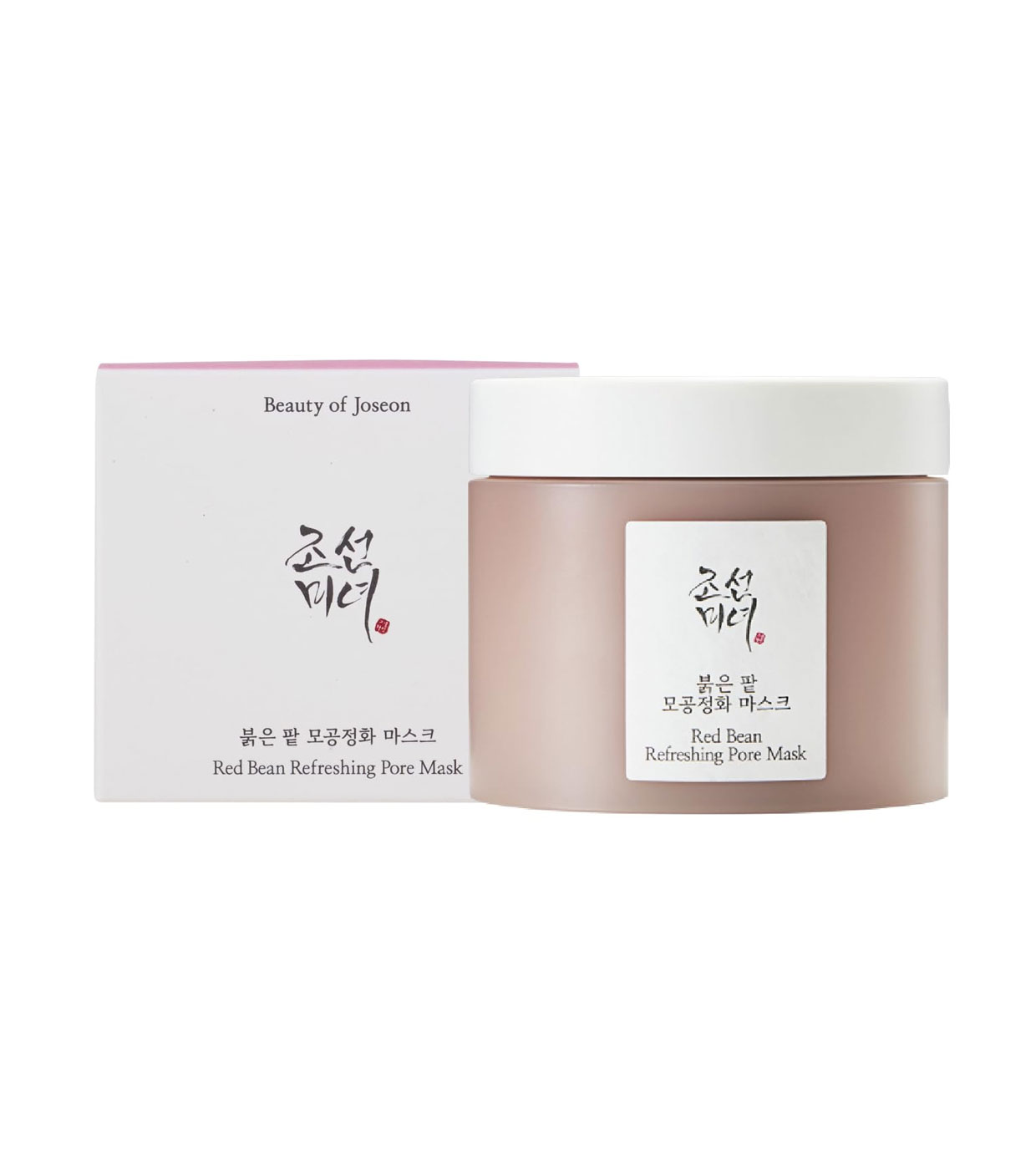 Red Bean Refreshing Pore Mask da Beauty of Joseon é uma máscara lavável vegana projetada para oferecer limpeza profunda e esfoliação suave, formulada com extrato e pó de feijão vermelho.