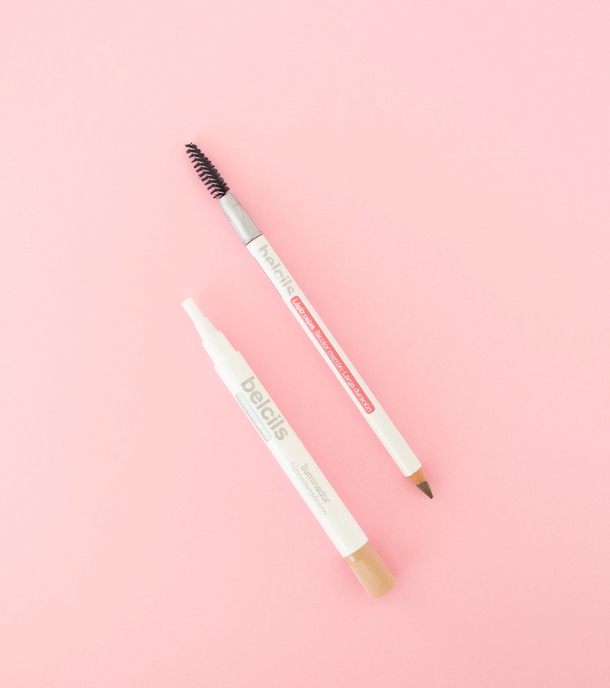 Lápis de sobrancelha hipoalergênico marrom bicolor da Belcils.