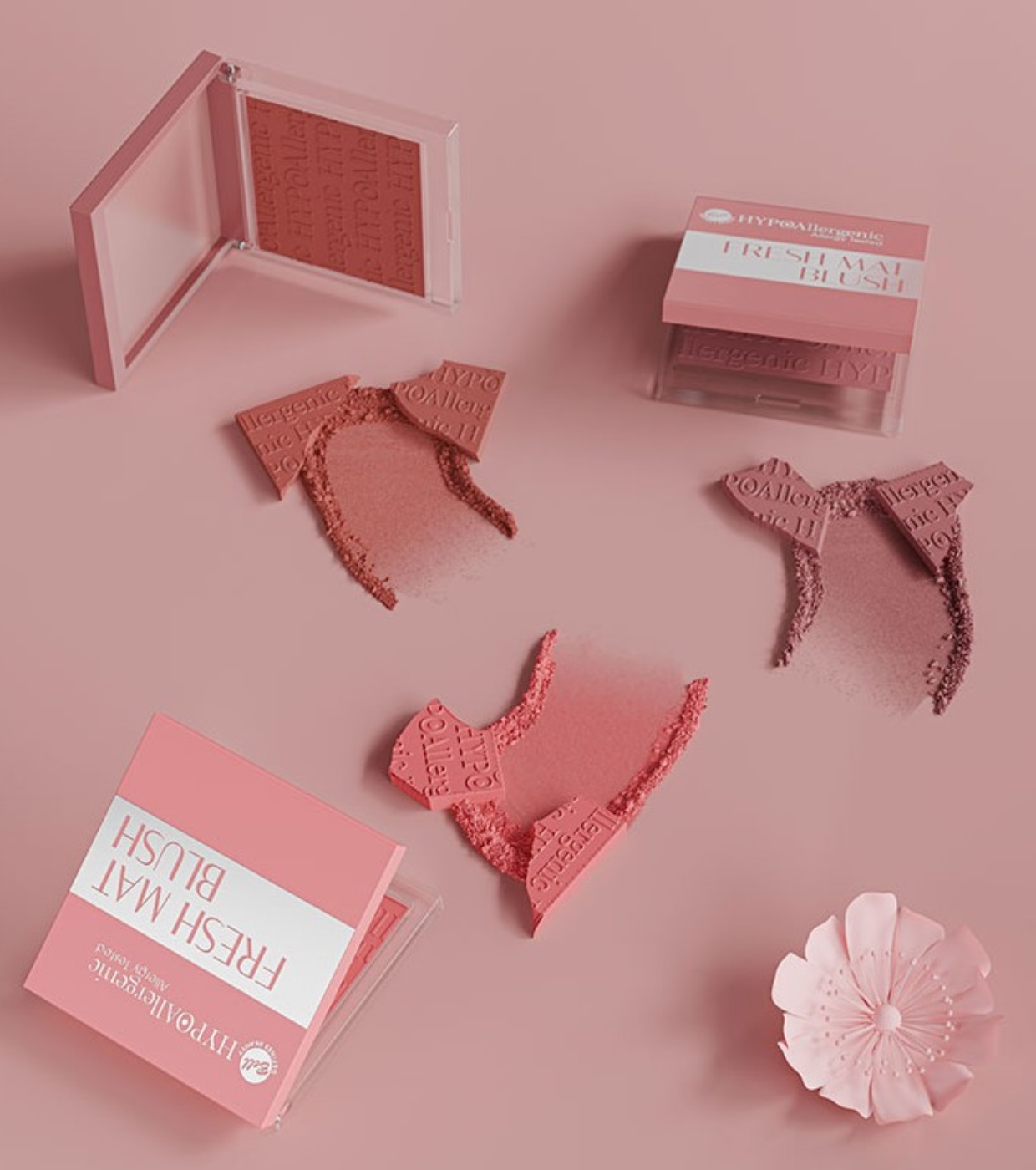 Obtenha uma pele radiante e uma aparência fresca e natural com este Fresh Mat Blush hipoalergênico da Bell com acabamento fosco.