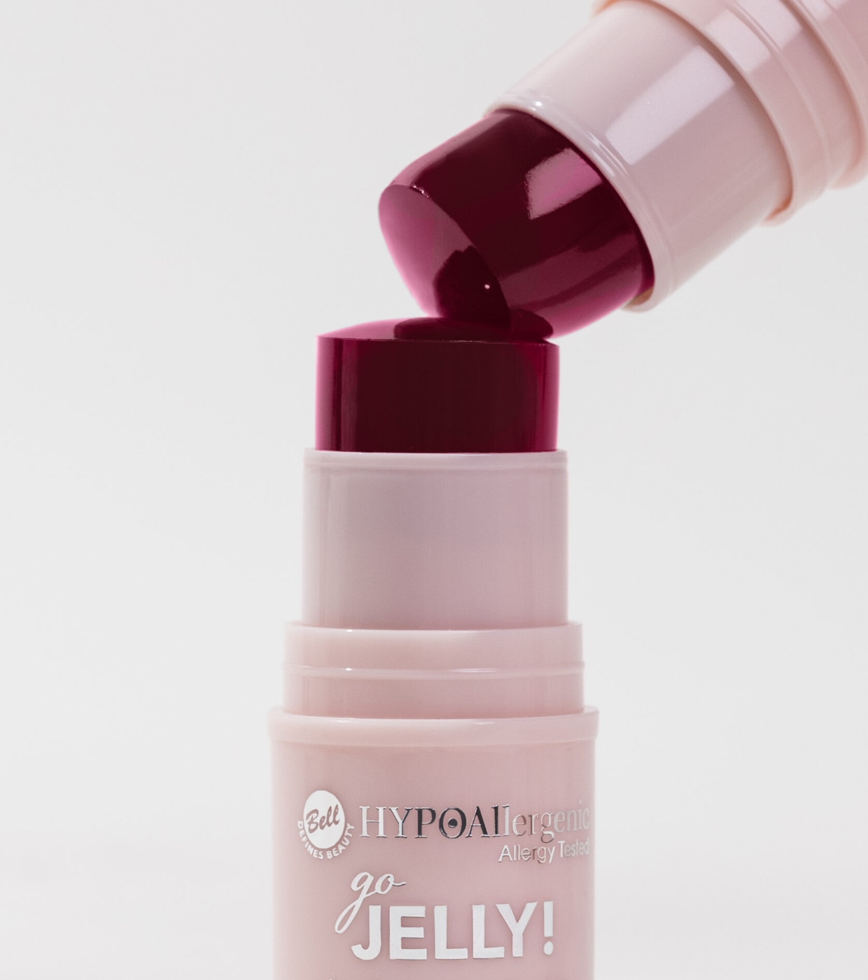 Bell HypoAllergenic Go Jelly! Lip & Cheek Jelly Tint é um bastão multiuso com textura de gel leve, ideal para uso como blush e lip tint.