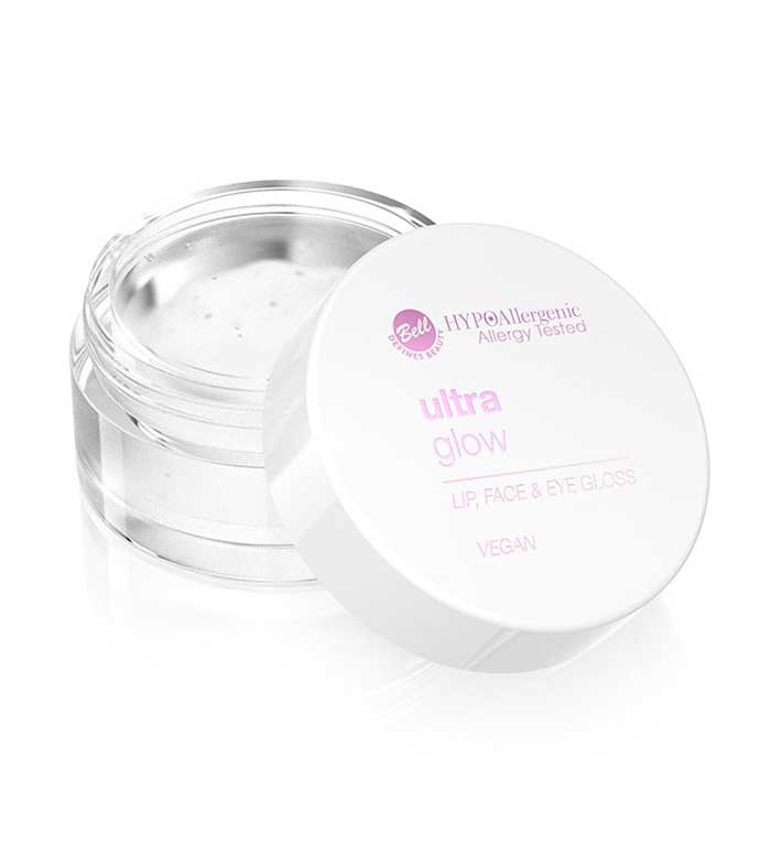 O inovador brilho transparente para lábios, rosto e pálpebras da Bell HypoAllergenic Ultra Glow fornece uma pele impecável que é opticamente suave e brilhante como uma folha de vidro.